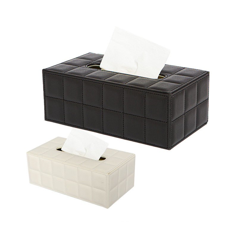 家居用品黑色皮革长方形纸巾盒羊皮纹车线格子抽纸盒客厅纸巾盒