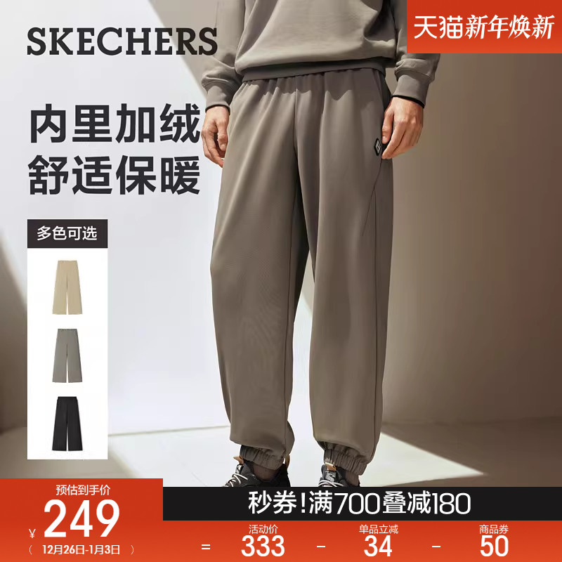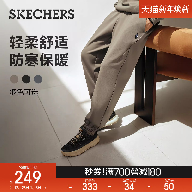 斯凯奇秋冬新款加绒男针织长裤运动裤舒适休闲户外长裤保暖束脚裤