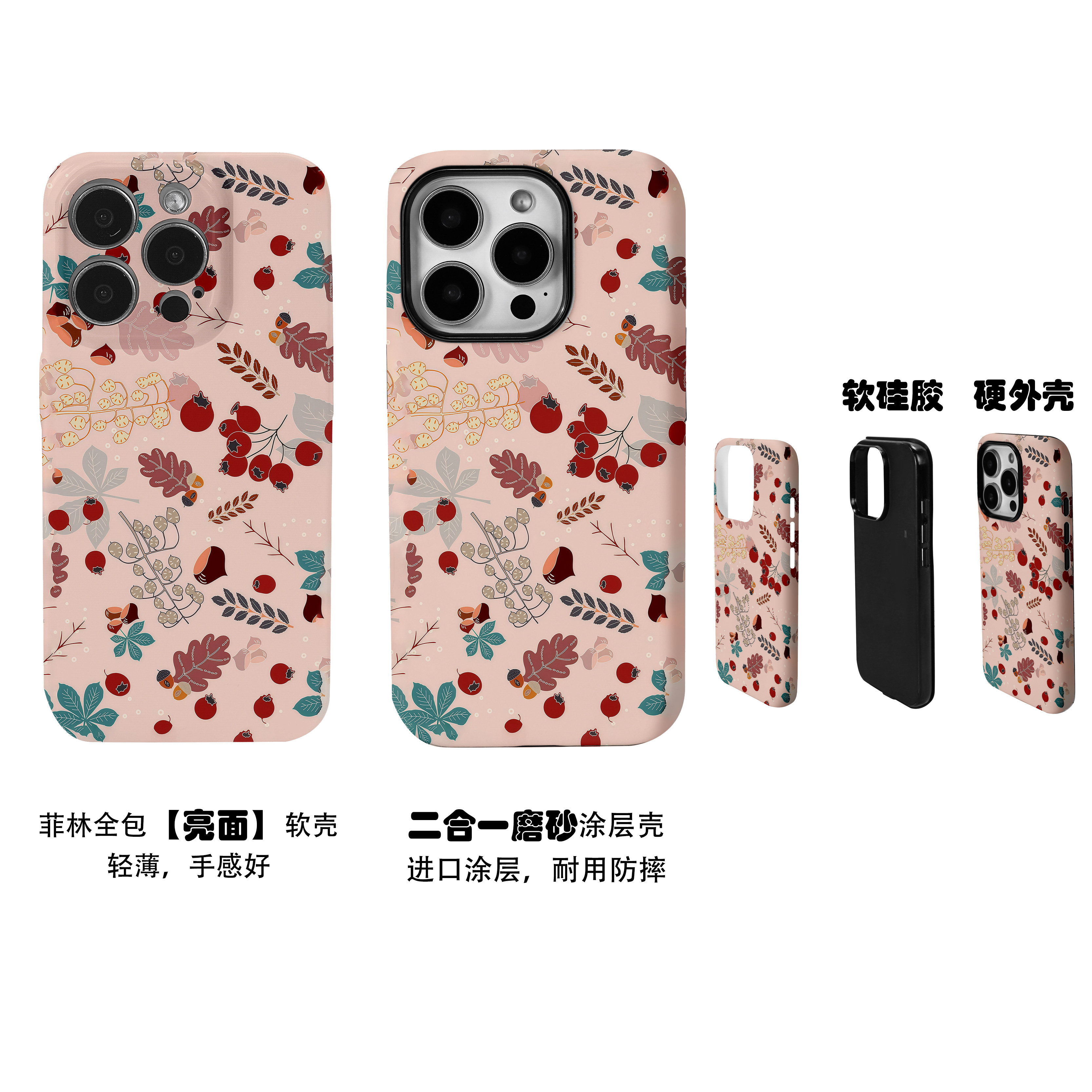 卡通插画山楂和小板栗菲林二合一手机壳适用苹果17nova14华为p70mate60小米15opporen14ovivo荣耀300iPhone16
