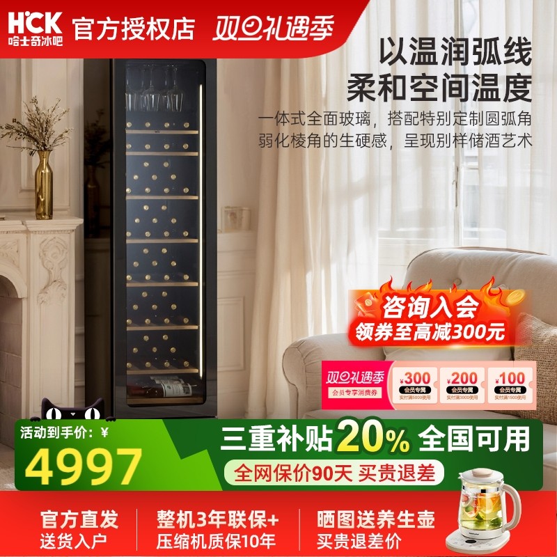 HCK哈士奇红酒柜恒温恒湿52瓶家用250L嵌入式冰箱超薄冰吧冷藏柜