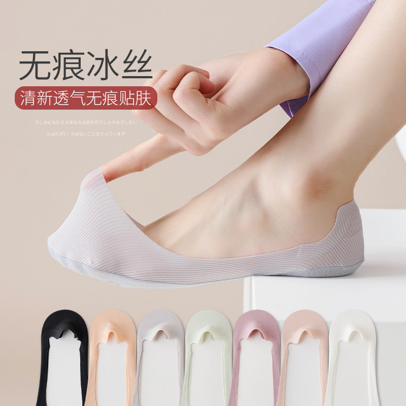 袜子女防滑船袜夏季隐形袜纯棉底冰丝不掉跟浅口单鞋高跟鞋薄款