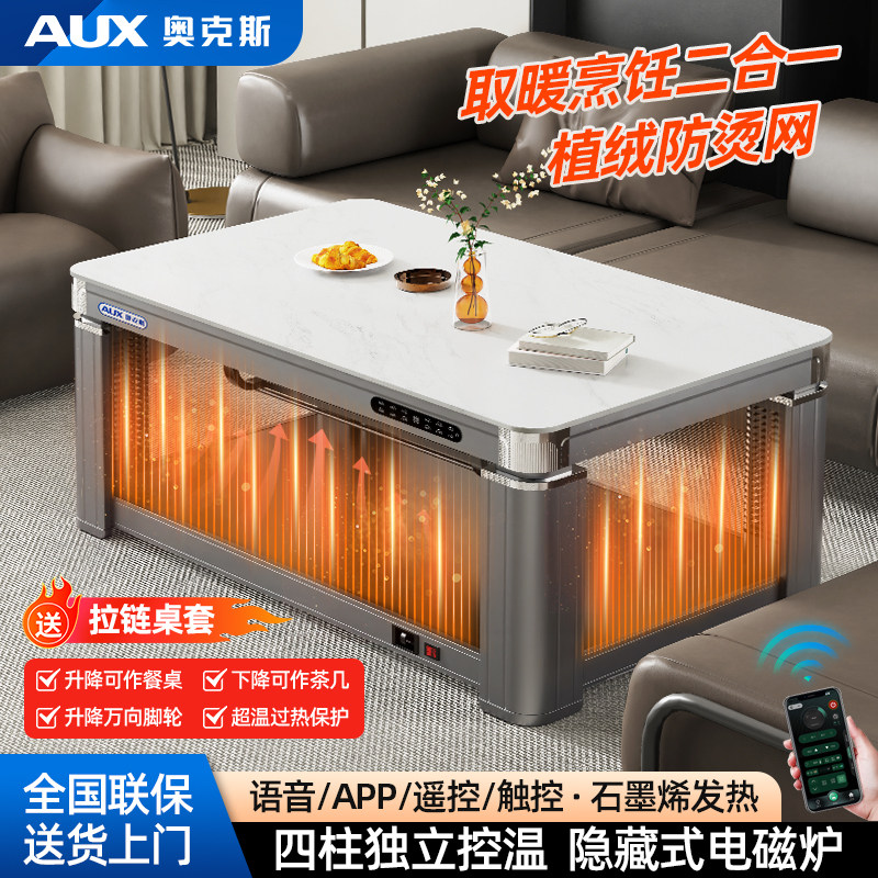 奥克斯取暖桌茶几隐形电磁炉火锅可升降移动烤火桌餐桌客厅家用