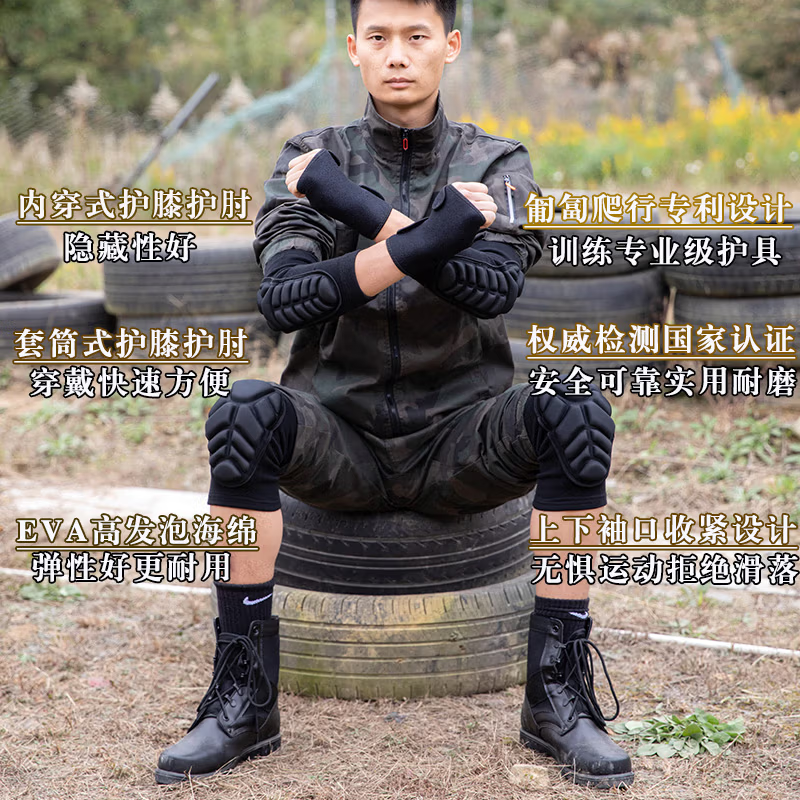 战术护膝护肘军迷户外训练爬行高弹防撞骑行攀岩运动专业护具套装
