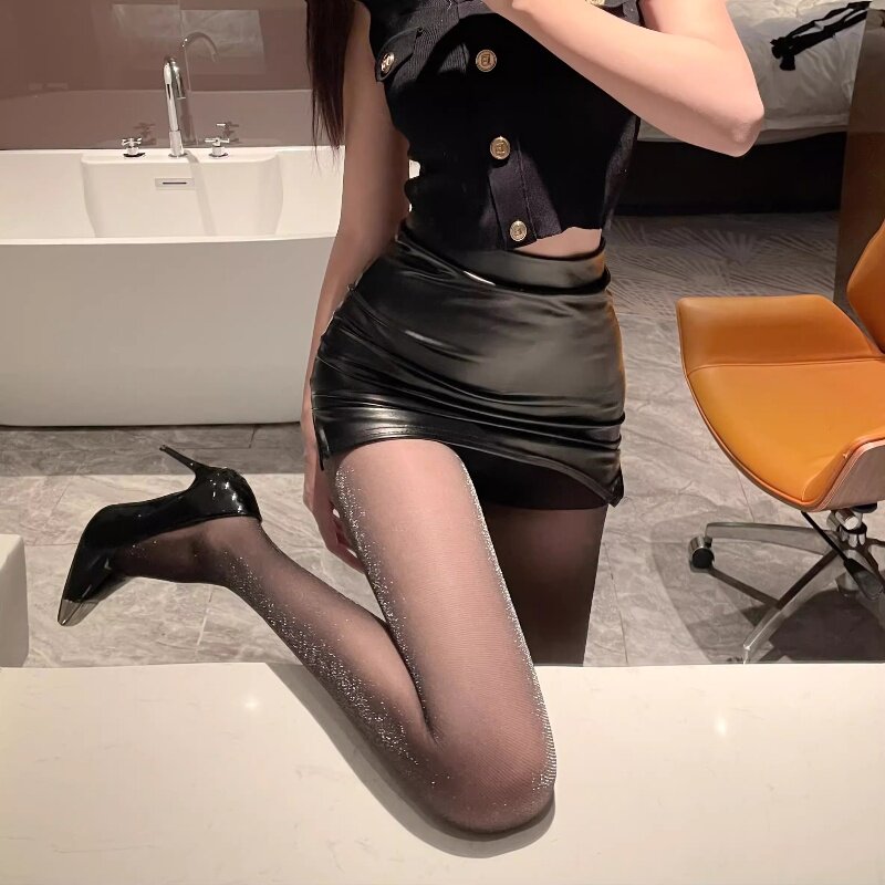 珠光丝袜女满天星细闪光反光薄款防勾丝亮丝光黑丝性感打底连裤袜