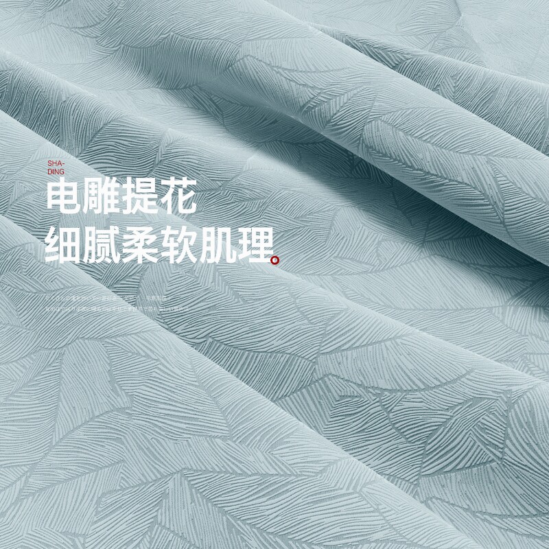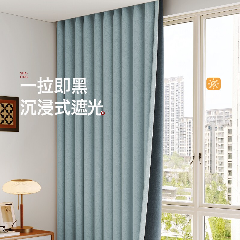 隔热防晒窗帘全遮光2025新款卧室高级感客厅法式电雕压花蓝色全布