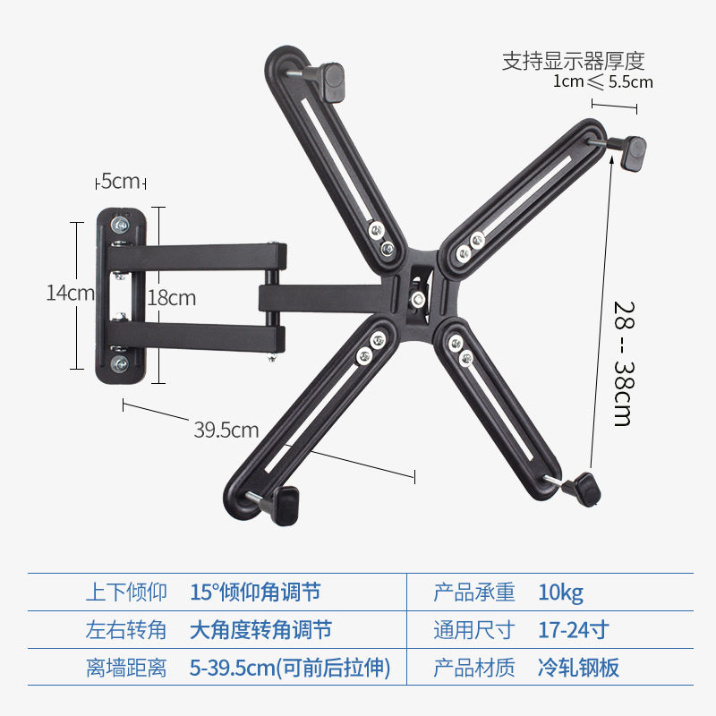 无孔显示器挂架无安装孔液晶电脑支架壁挂架子支撑架19 23 24英寸