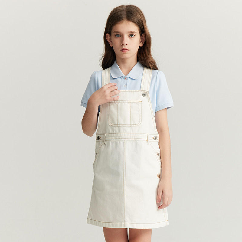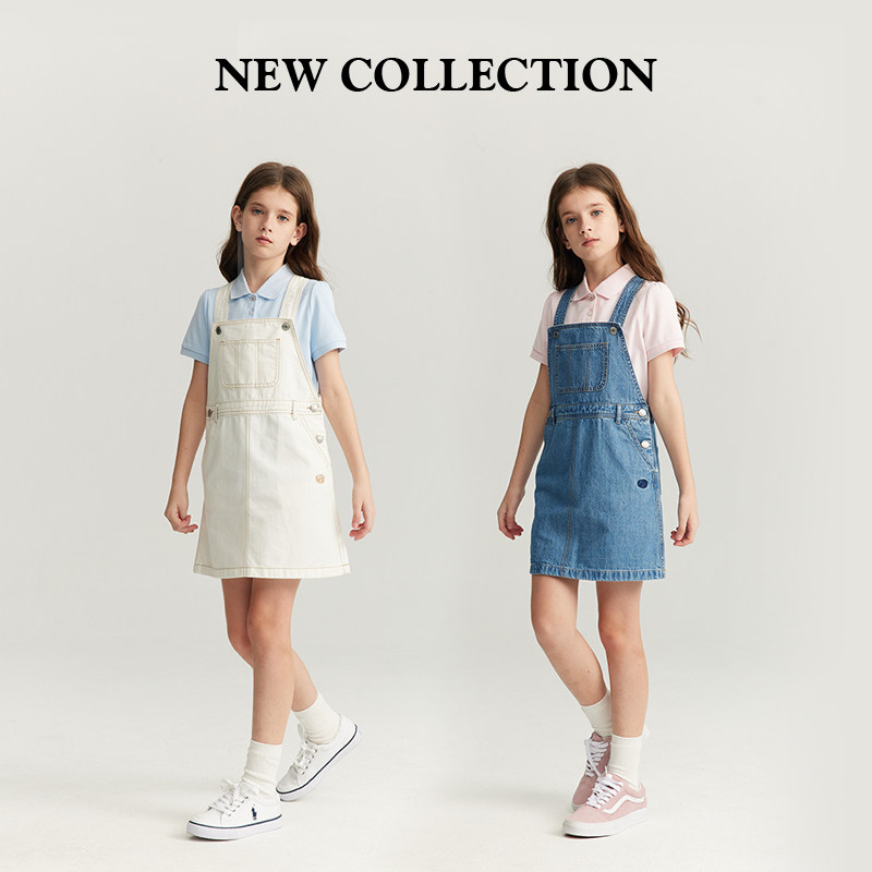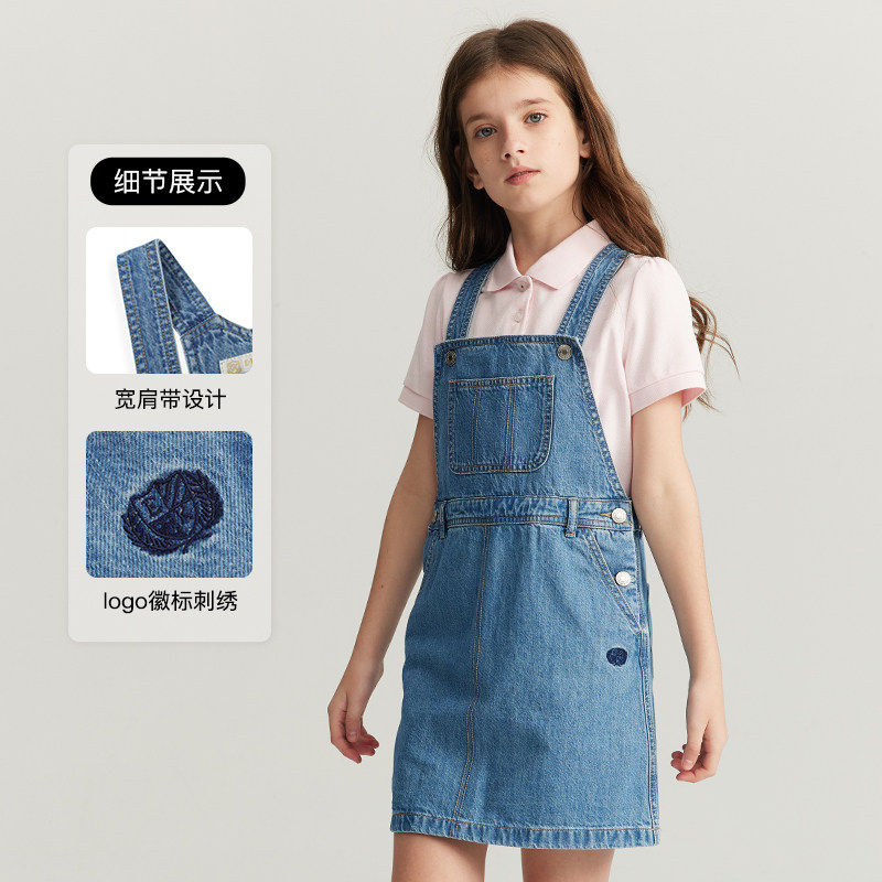 eland kids衣恋童装女童背带裙夏季中大童复古休闲牛仔连衣裙洋气