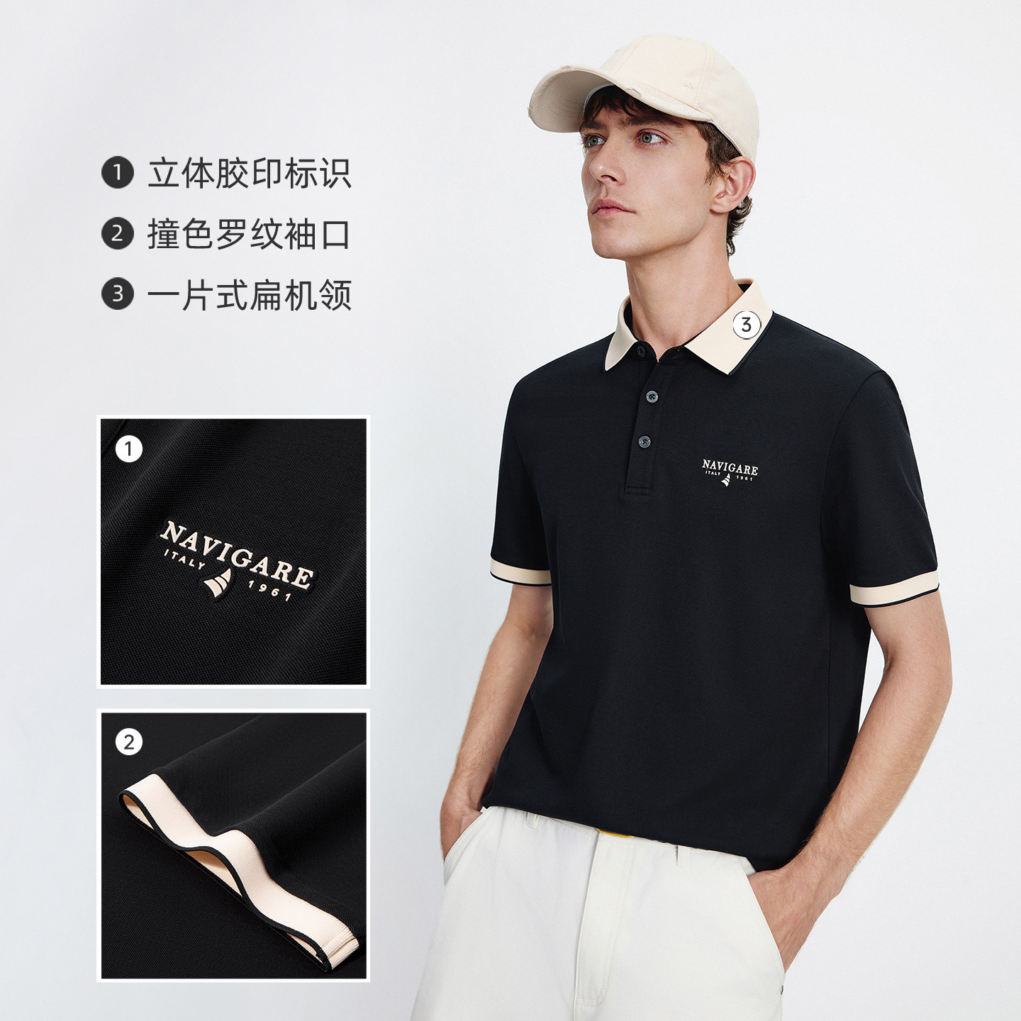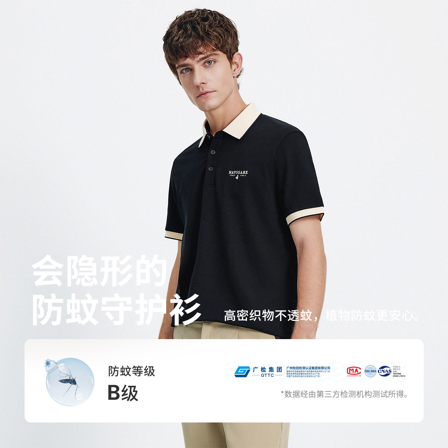 [防蚊]Navigare意大利小帆船弹力短袖POLO衫男2026夏季翻领T恤衫