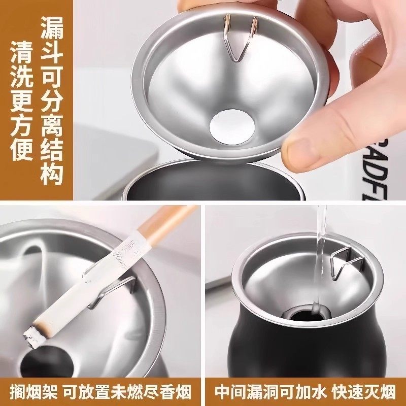不锈钢烟灰缸防飞灰带烟扣潮流创意防风个N性客厅家用卧室灭烟沙