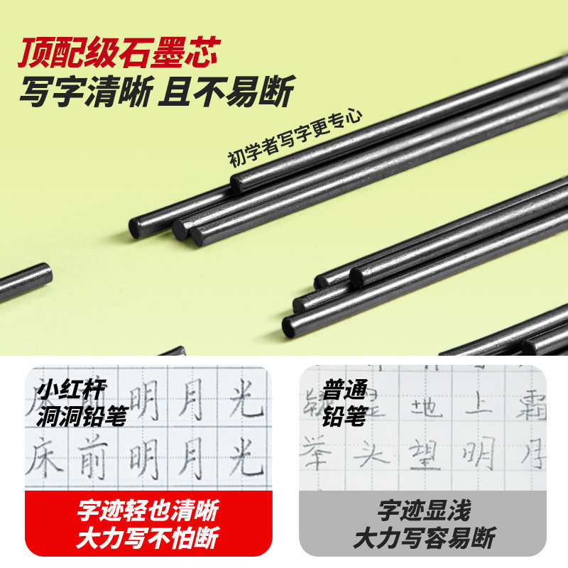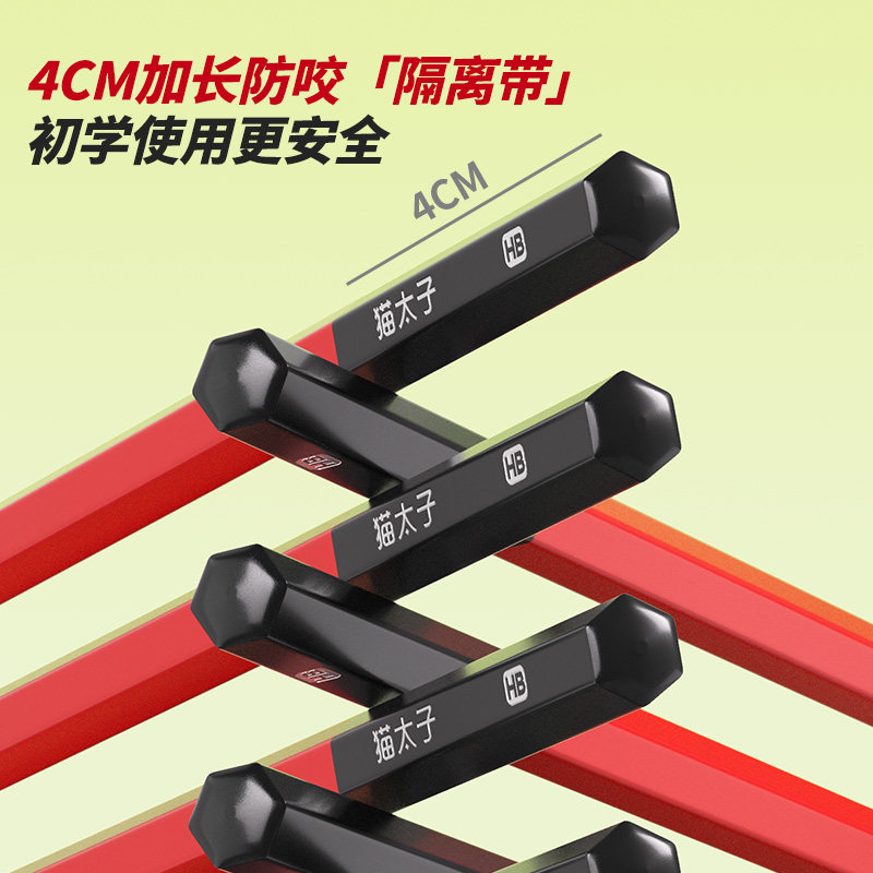 猫太子小红杆洞洞铅笔小学生无铅无毒2025年款一年级儿童专用定制hb幼儿园初学者二年级学生正姿加长笔六角杆
