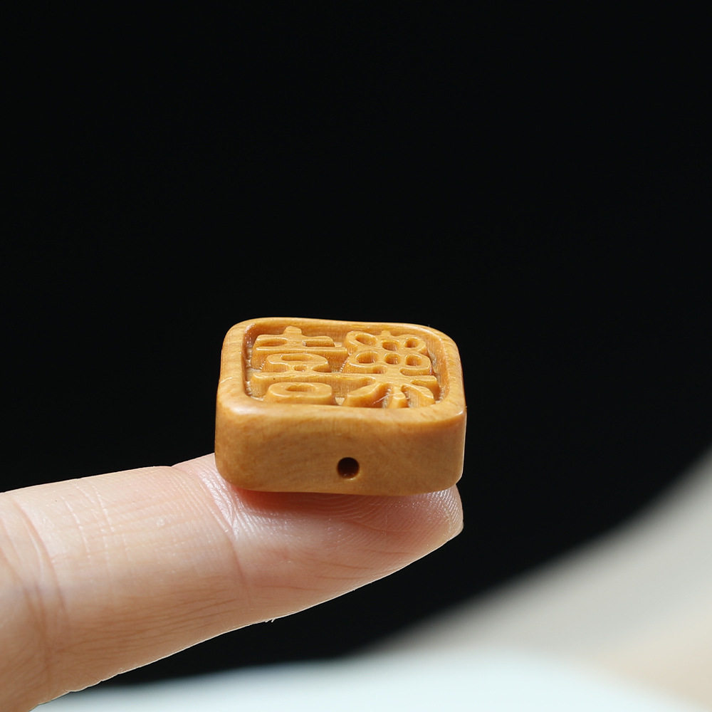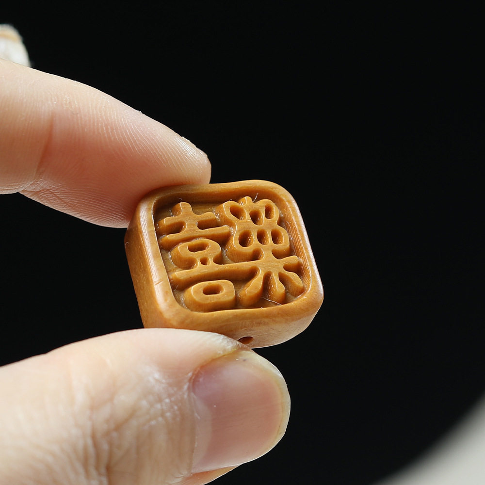 紫檀木雕刻平安喜乐方牌配件手工DIY文玩佛珠饰品配饰手机链吊坠