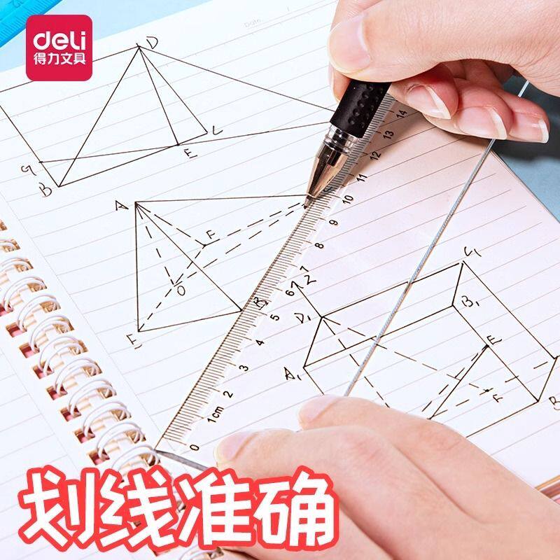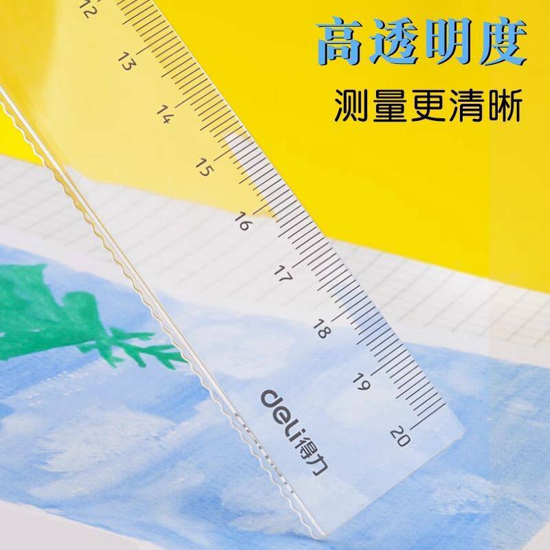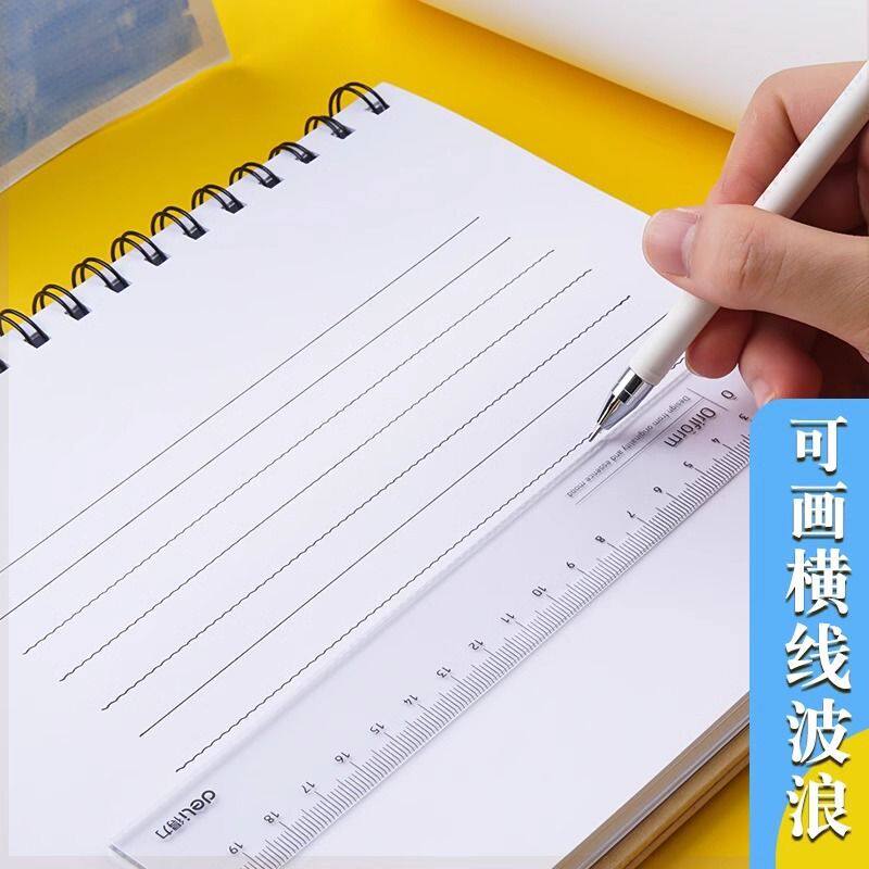 得力透明直尺带波浪线小学生专用尺子一年级学生文具儿童15cm塑料20cm学生文具绘图画板测量工具尺子好用不贵