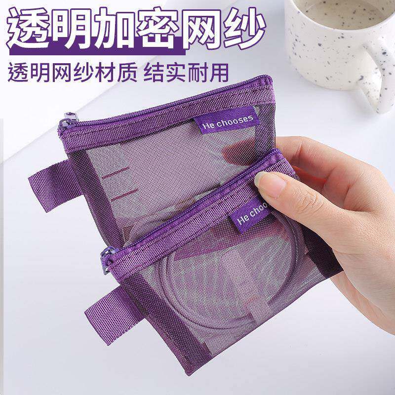 充电器收纳包紫气东来透明大容量彩色尼龙数据线耳机线可视多功能零钱包手机配件证件旅行外出数码多用便携包