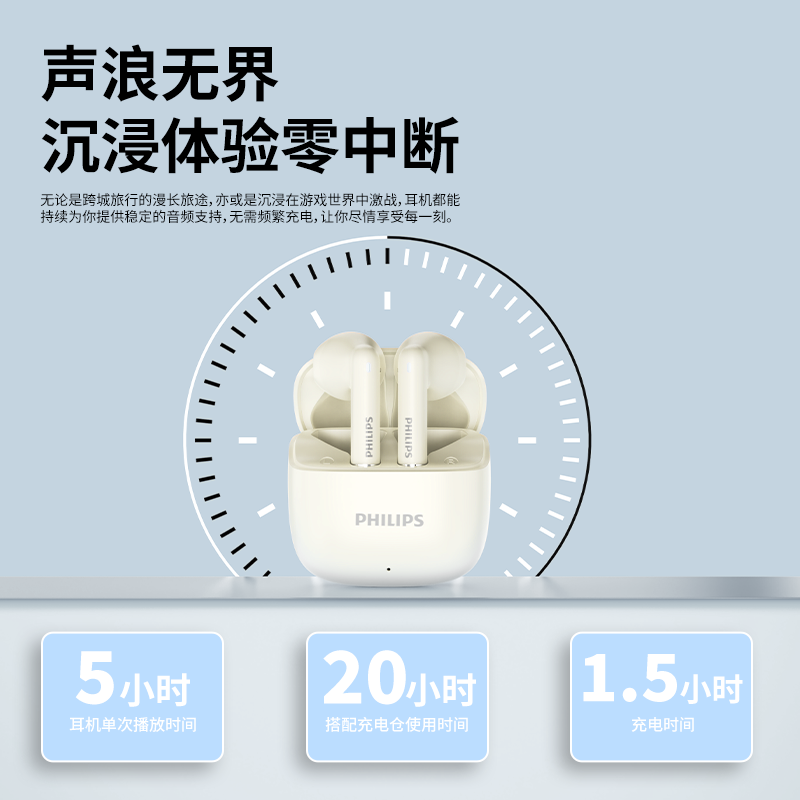 【官方正品】飞利浦蓝牙耳机TAT1020无线入耳运动降噪超长续航