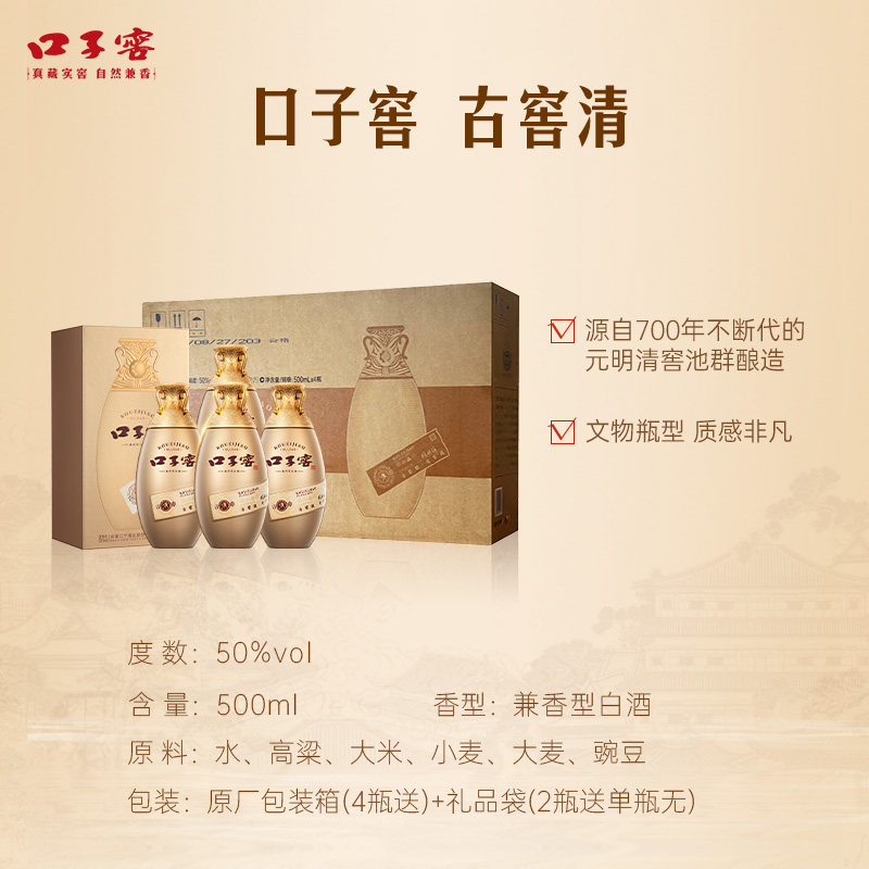 口子窖古窖清50度500mL*4瓶整箱 安徽兼香型白酒口粮酒送礼送长辈