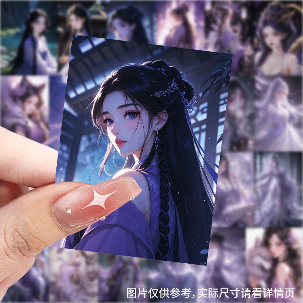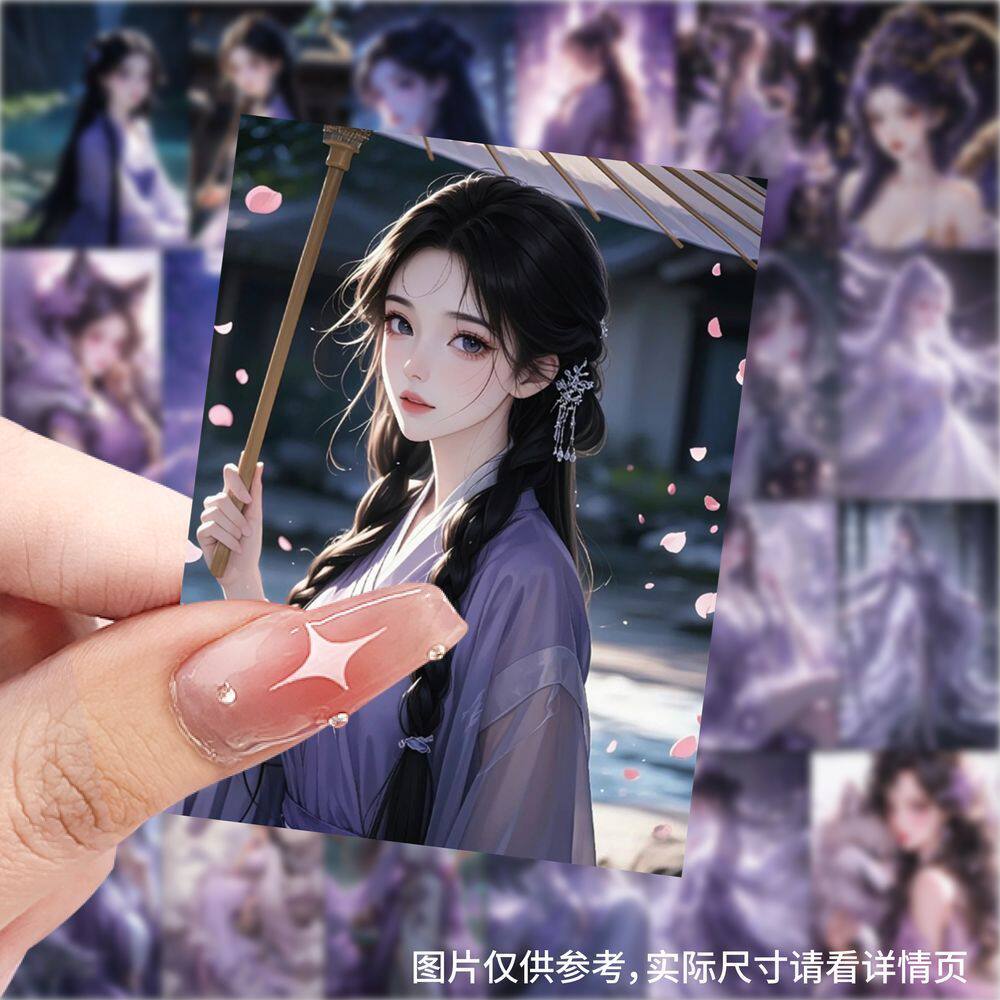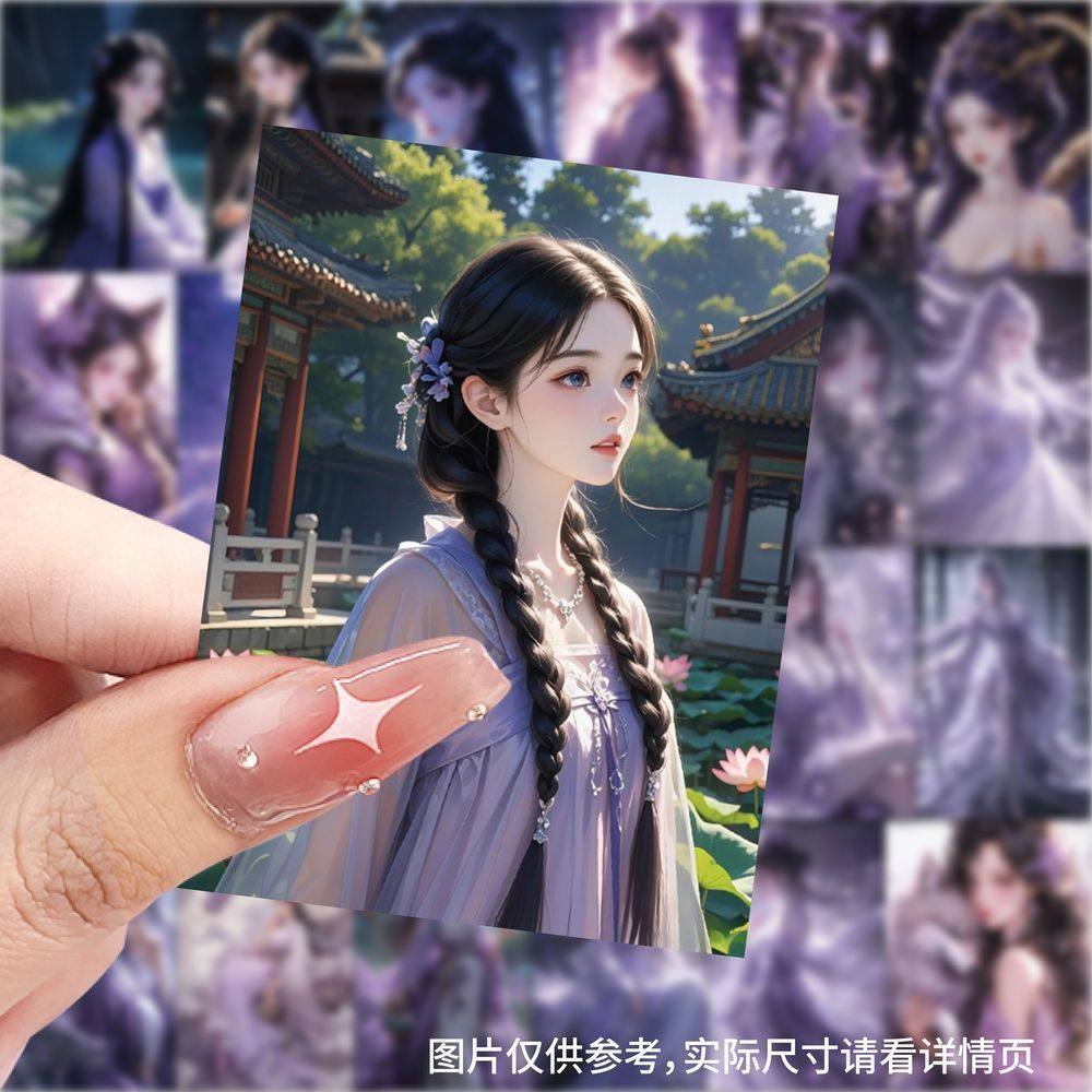 紫色系美女插画壁纸贴纸周边手机桌面diy手账防水装饰高颜值贴画