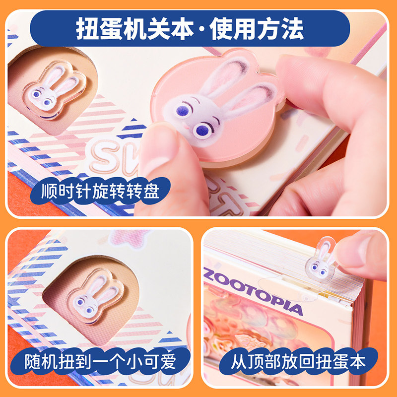 Disney迪士尼疯狂动物城扭蛋机关本女生可爱卡通笔记本记事本2026新款儿童手账本小学生创意卡通高颜值日记本
