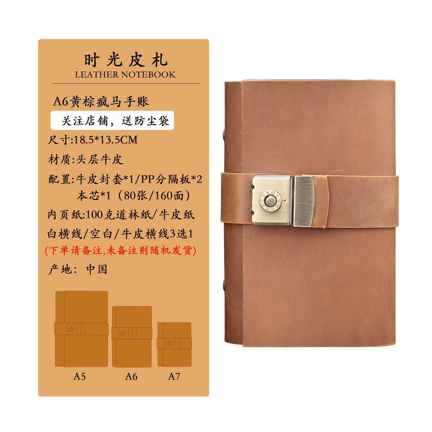 真皮密码本 头层牛皮记事日记本 复古密码锁扣 礼品手帐本A5A6A7