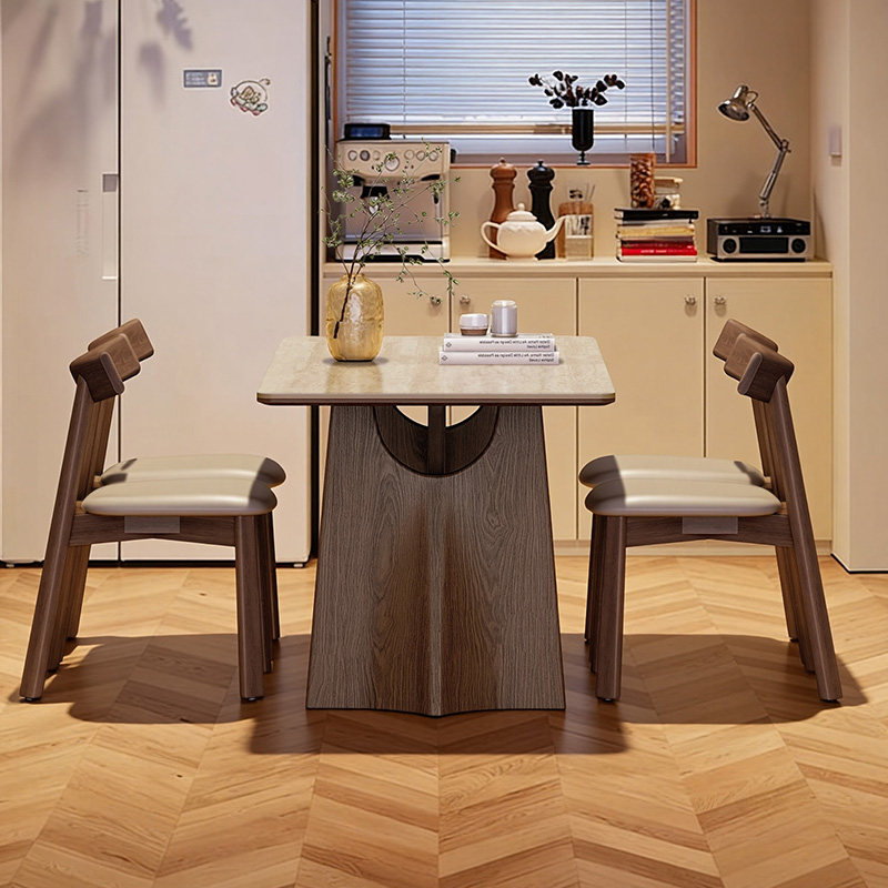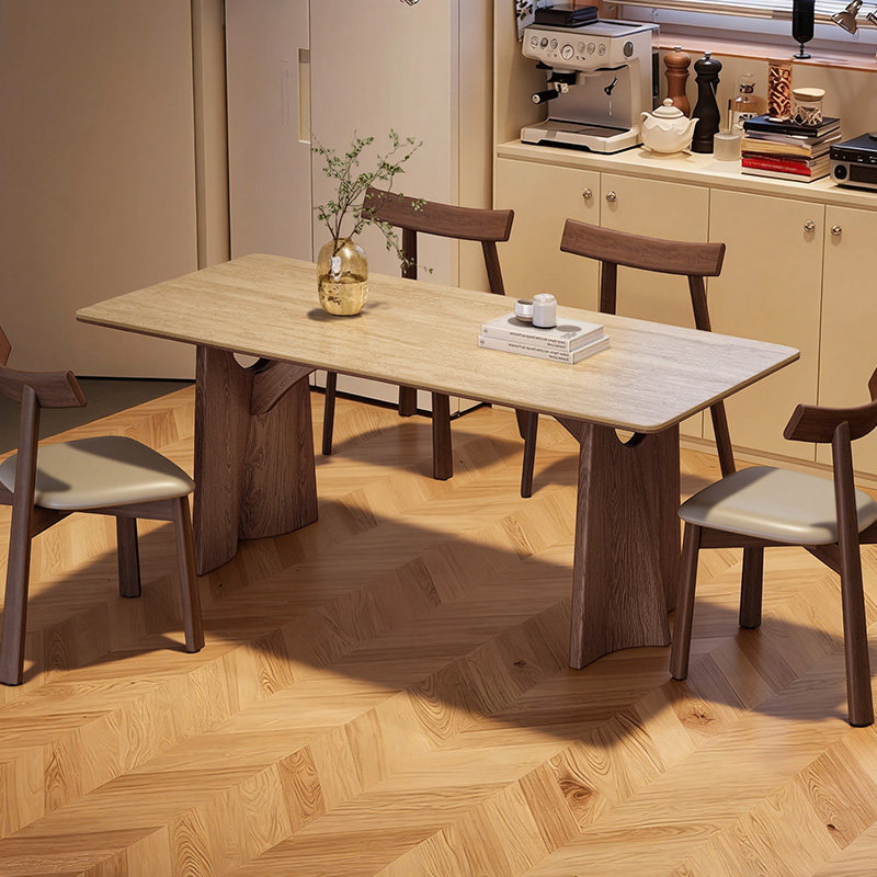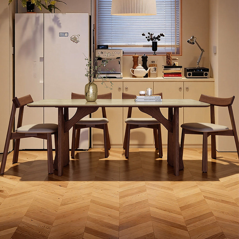 奥古斯特餐桌2026新款家用客厅小户型广东佛山中古风实木岩板餐桌