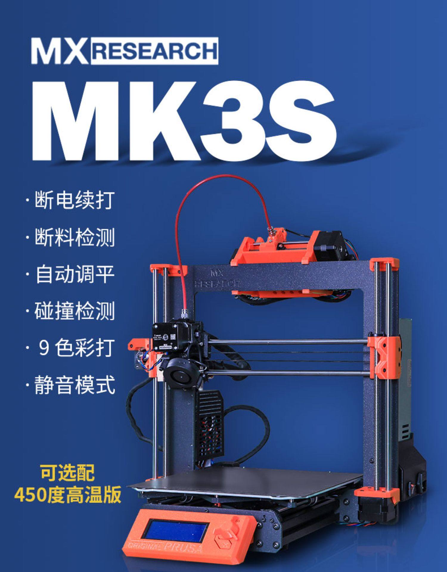 MX Prusa MK3S+ MMU2S 9色450度尼龙PEEK碳纤维静音多色3D打印机