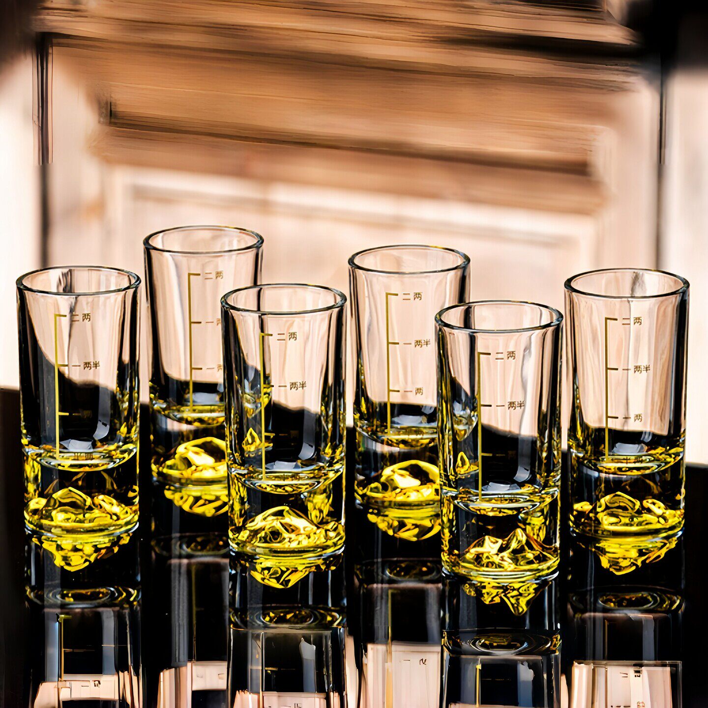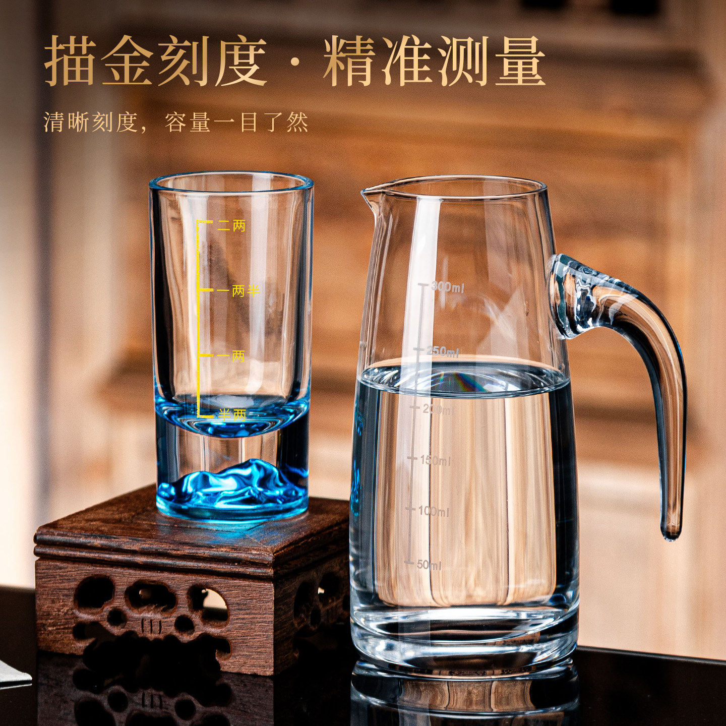 蓝山白酒杯套装二两家用轻奢小酒杯刻度分酒器高档酒具一口2两杯