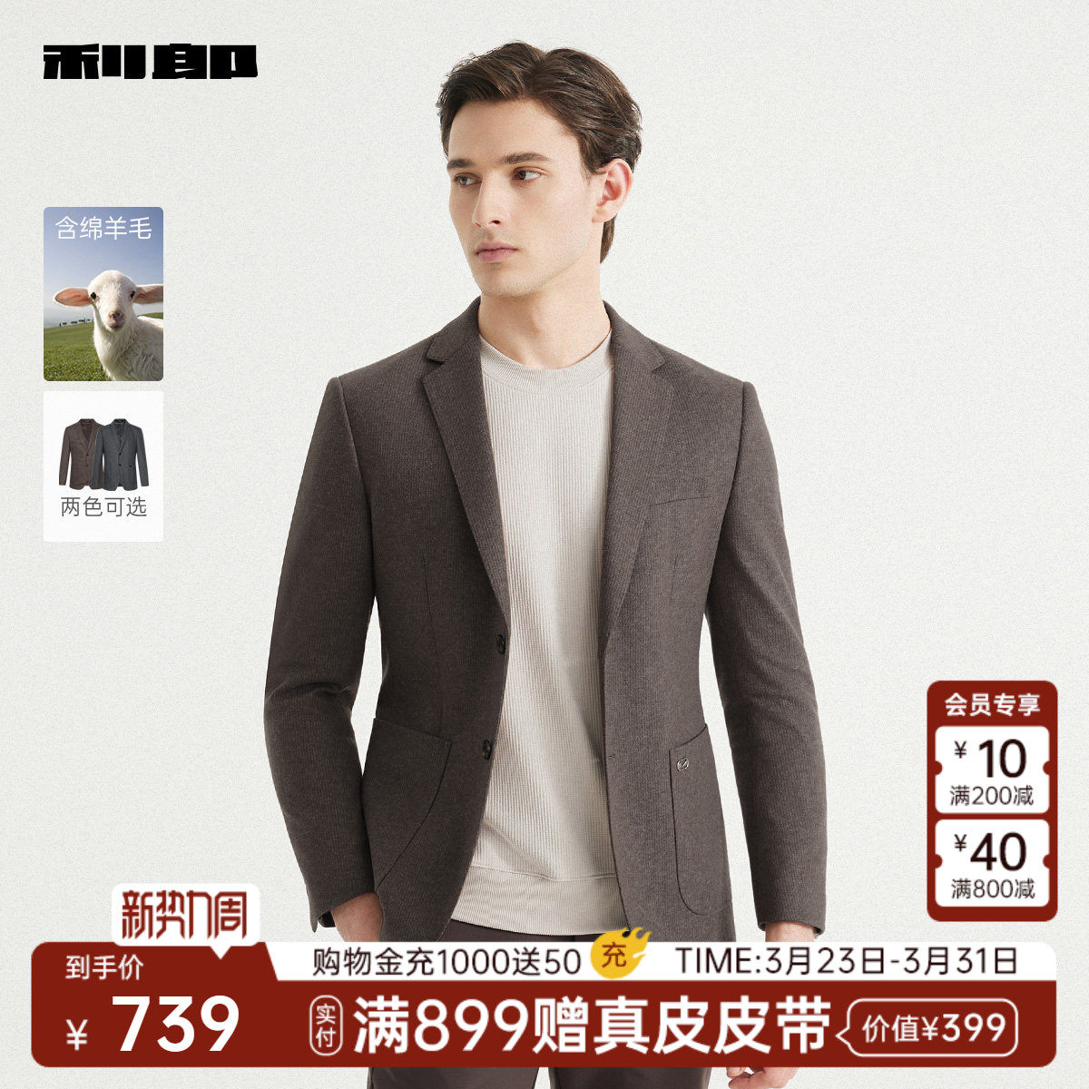 【绵羊毛】利郎官方 休闲西服男士提花条纹春秋款新款西装外套