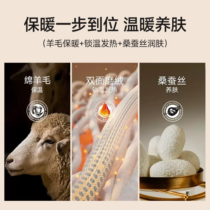 羊毛蚕丝秋裤女加厚加绒德无痕发热高腰保暖裤女羊毛棉裤打底裤冬