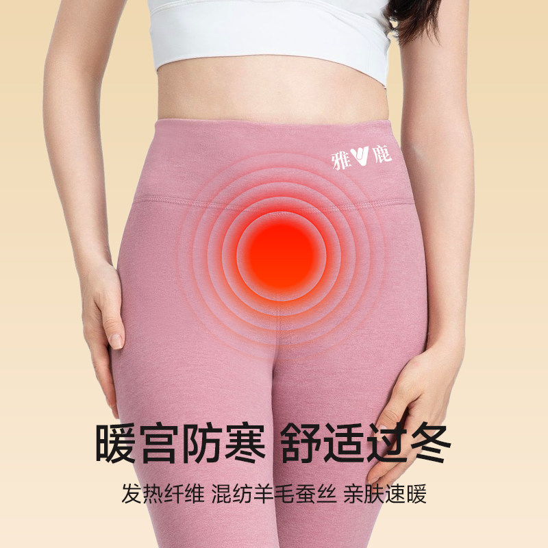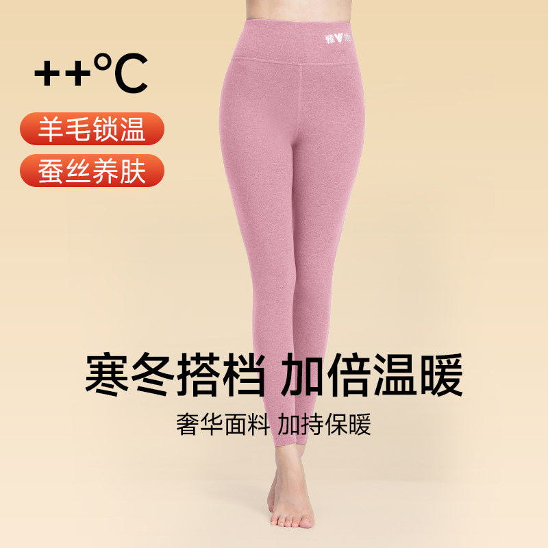 高腰秋裤女加厚加绒羊毛蚕丝打底裤女发热德绒无痕保暖羊绒棉裤冬