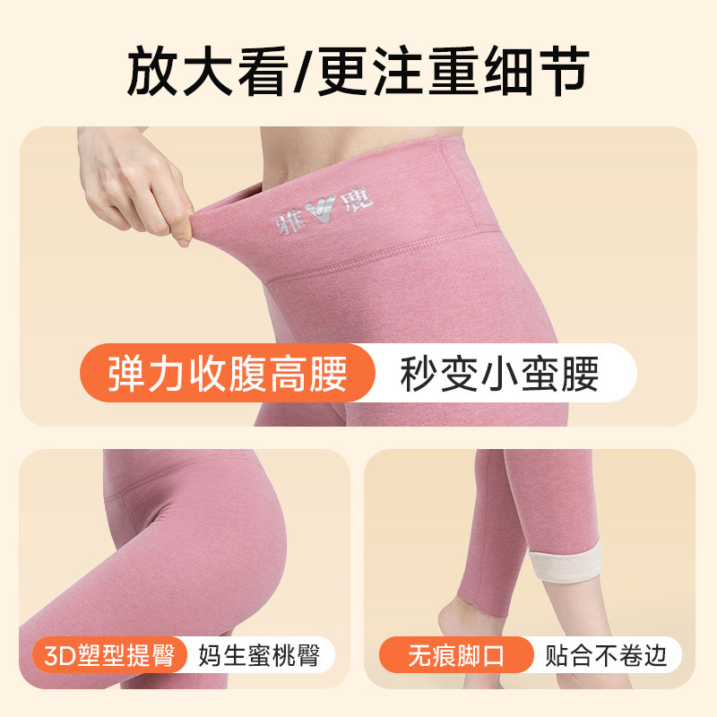 德绒秋裤女士内穿高腰保暖裤大码修身打底衬裤薄款发热棉毛裤冬季