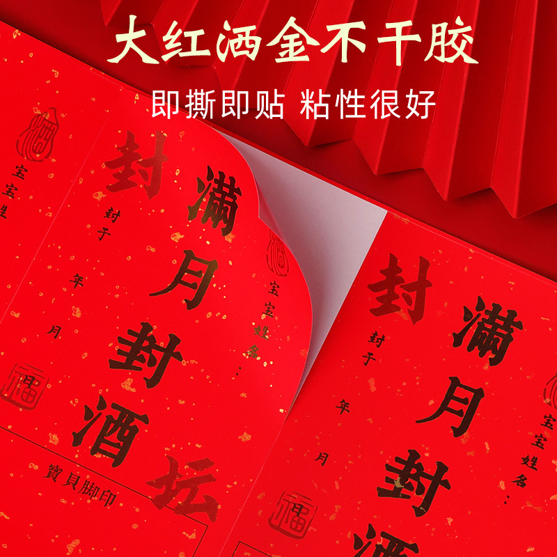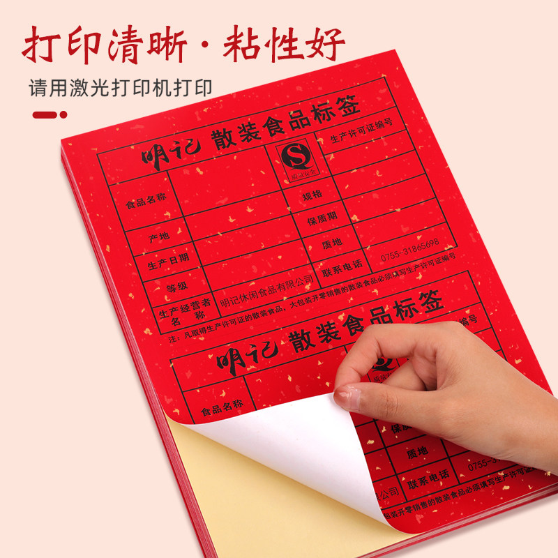 a4打印纸洒金不干胶自粘贴纸茶叶罐背胶定制满月婚礼封酒坛包装土特产蜂蜜标签复古烫金艺术激光打印标签贴纸