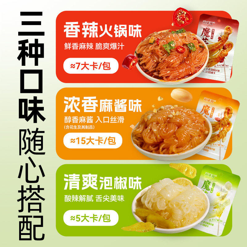 魔芋结粉丝低脂肪低热量方便速食零食小袋装火锅泡椒麻酱低卡粉丝