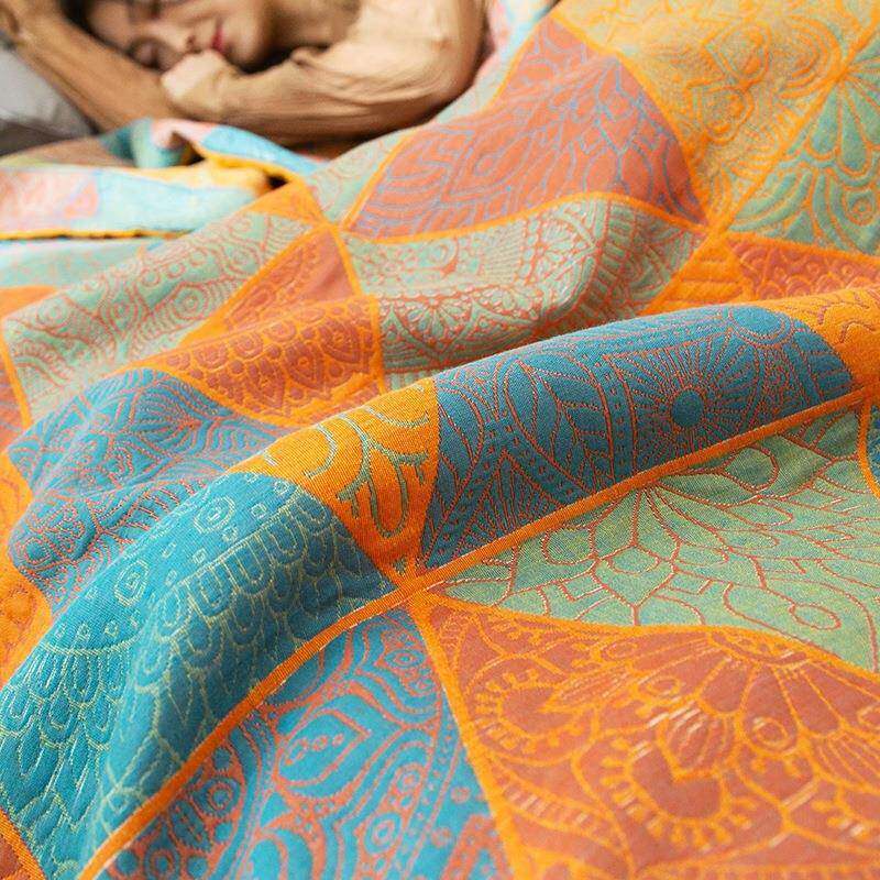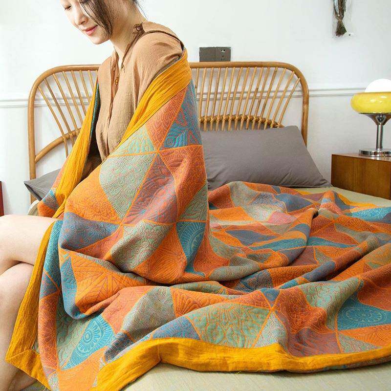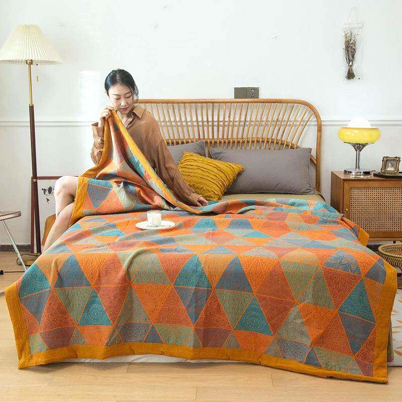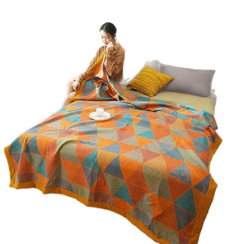 全棉三层纱布提花盖毯透气纱布加厚床单床盖双层纱毛巾被沙发毯