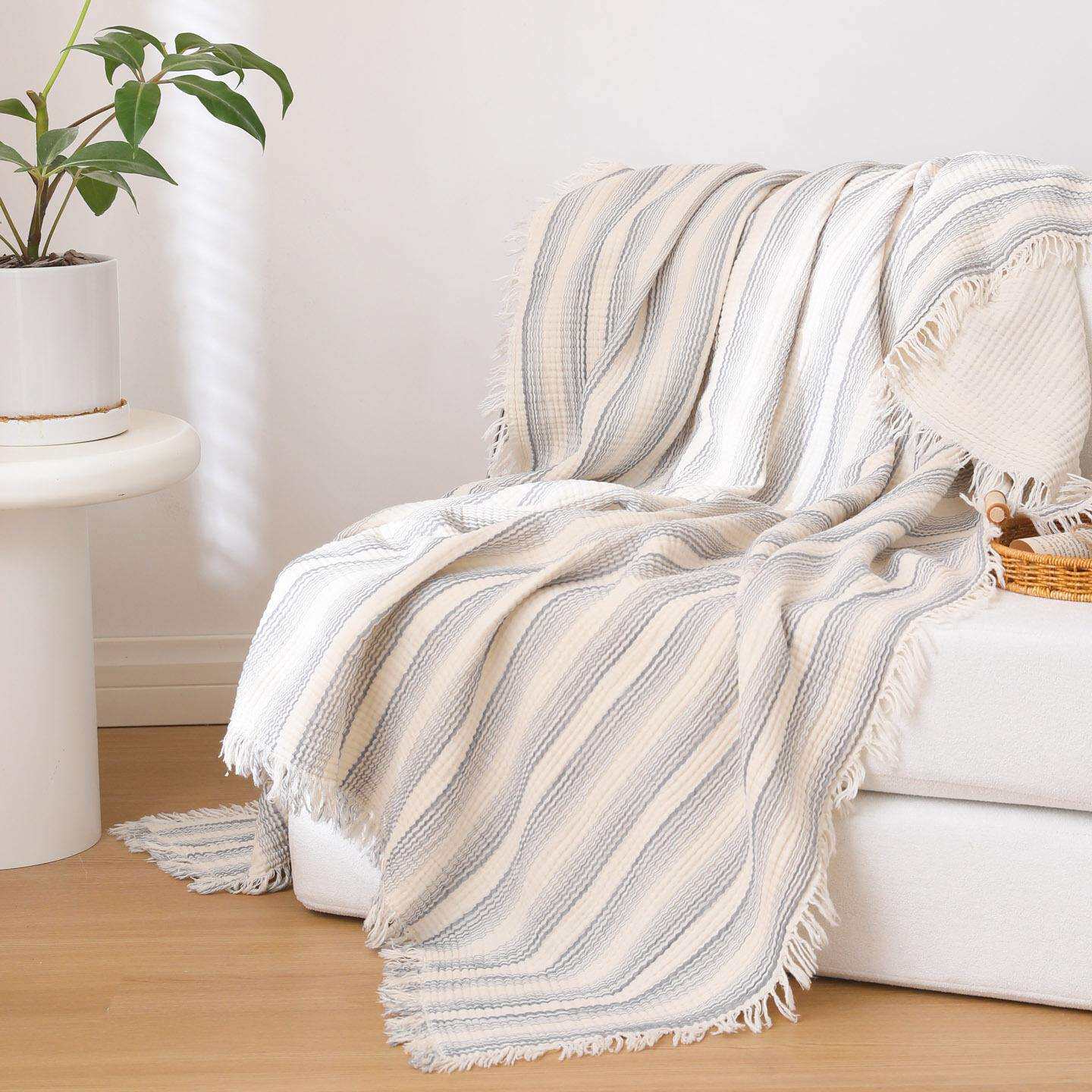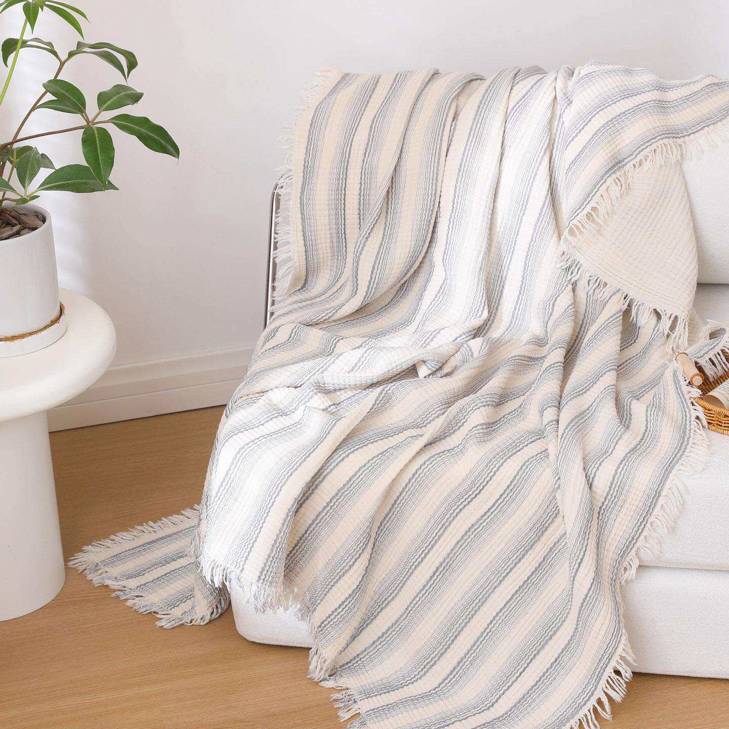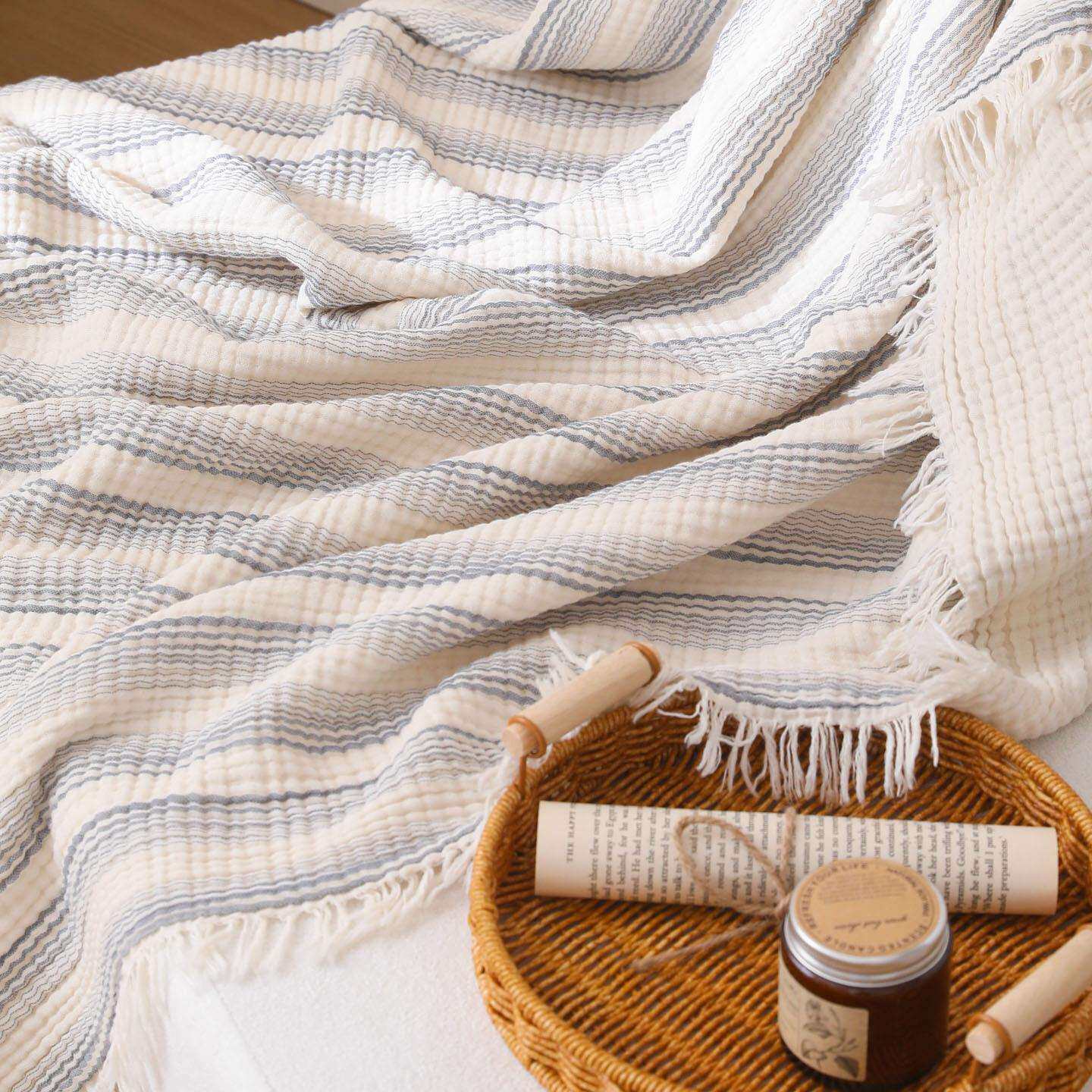 全棉四层纱流苏毛毯毛巾被沙发毯字卧室床上用休闲毯办公室针织毯