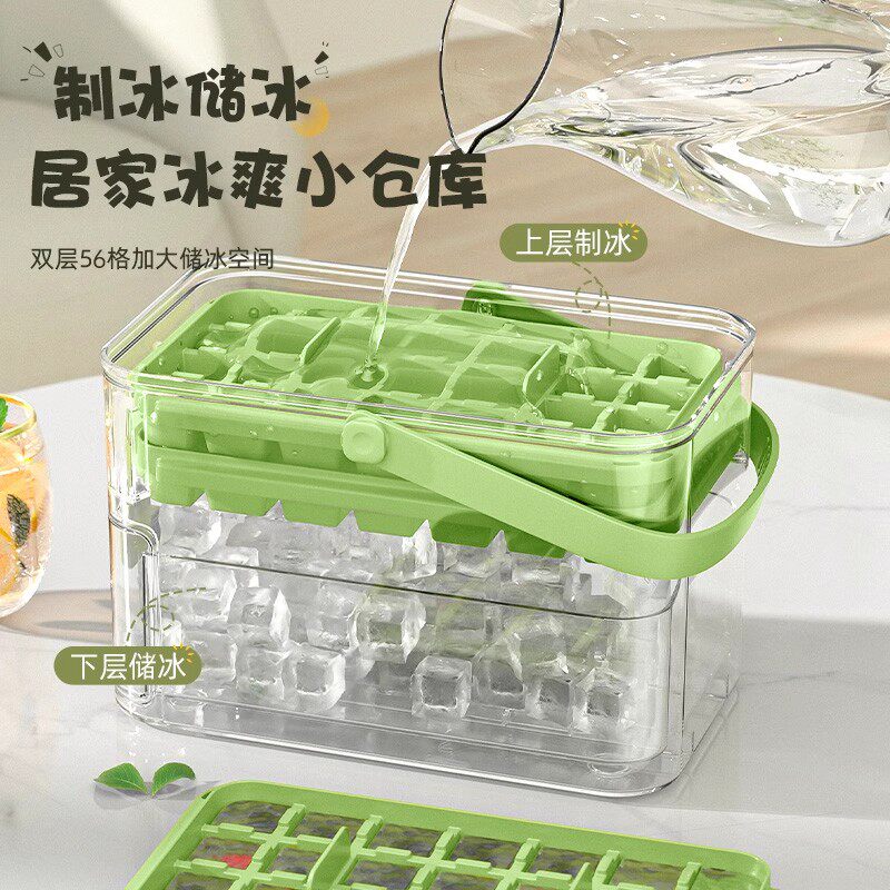 按压式冰块模具食品级按压冰格家用冰箱自制冰块储存盒冻冰块神器