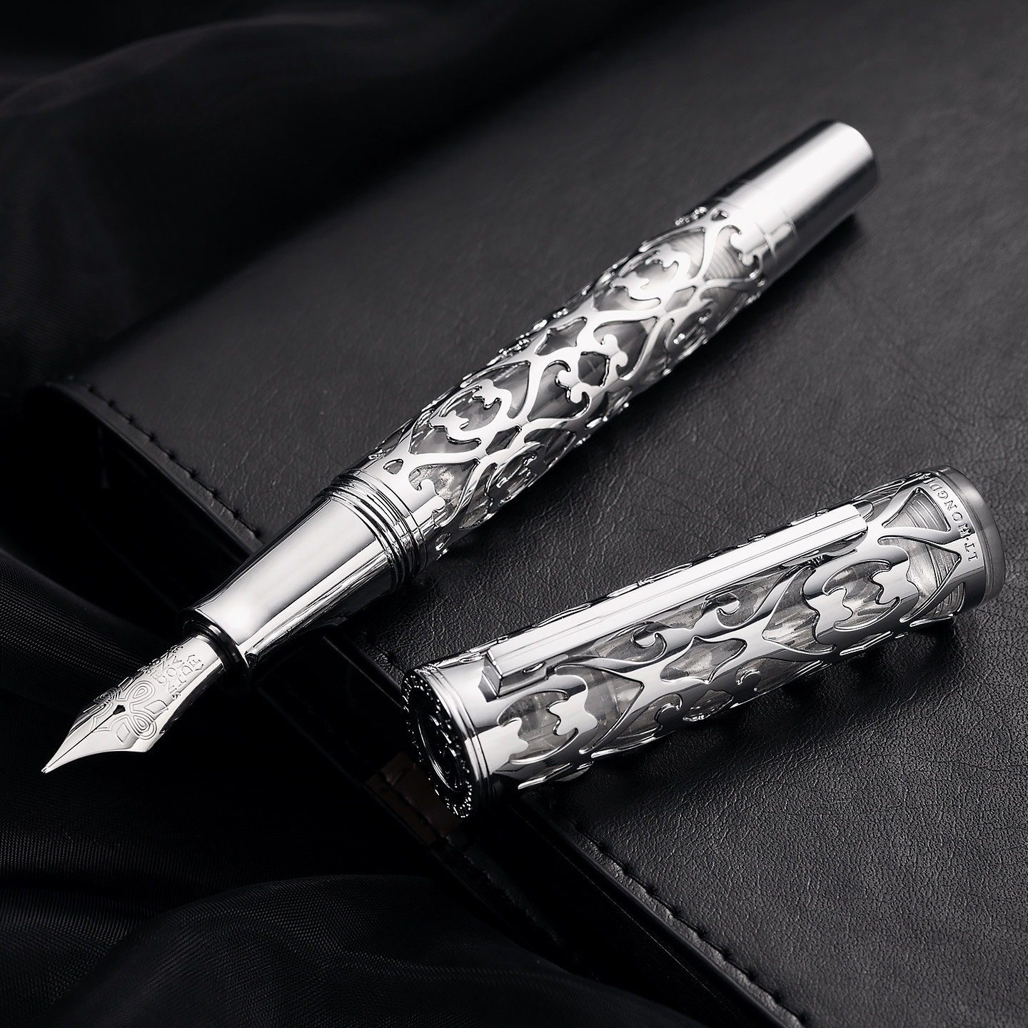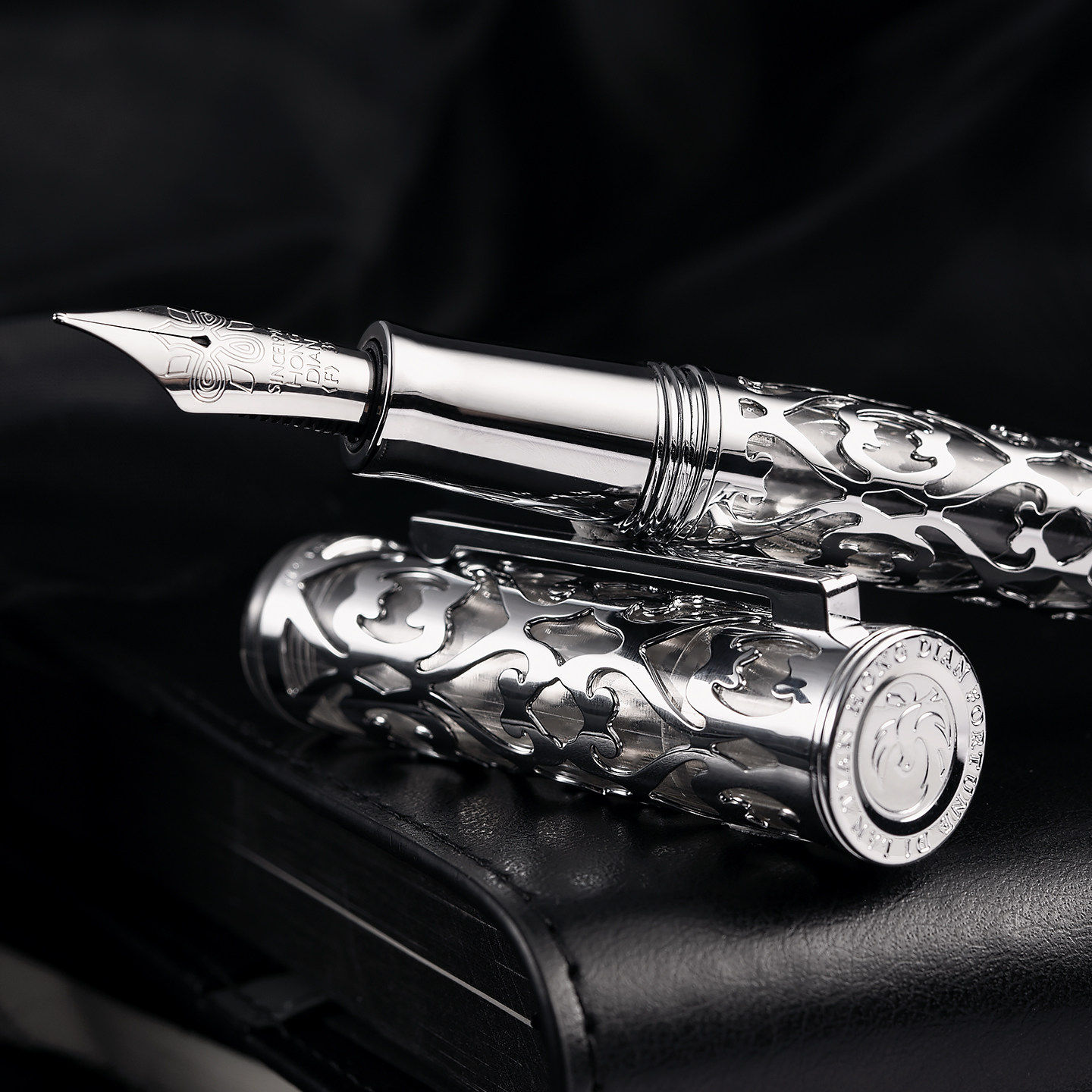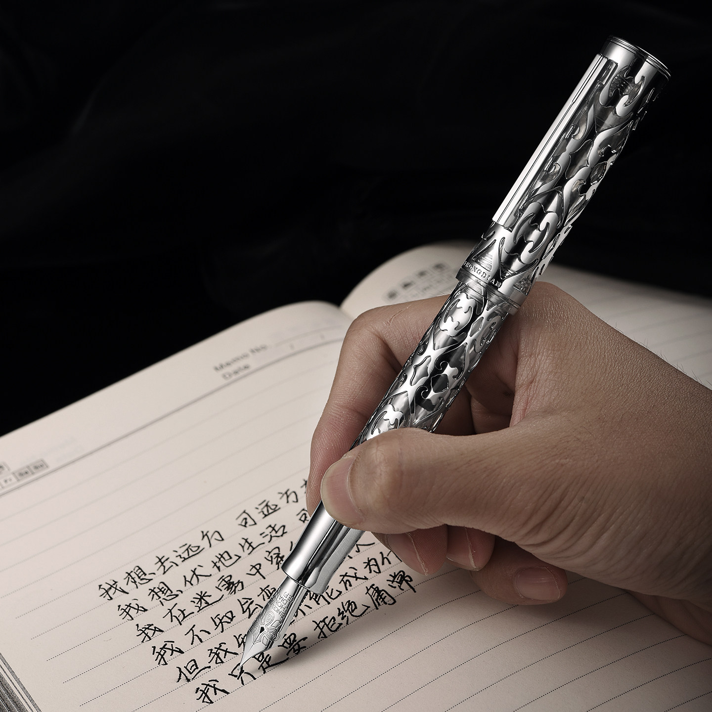 弘典钢笔男士高档练字学生用礼物女生精致送礼硬笔书法笔商务办公差动式活塞D1月笼镂空款软尖复古国风礼盒装