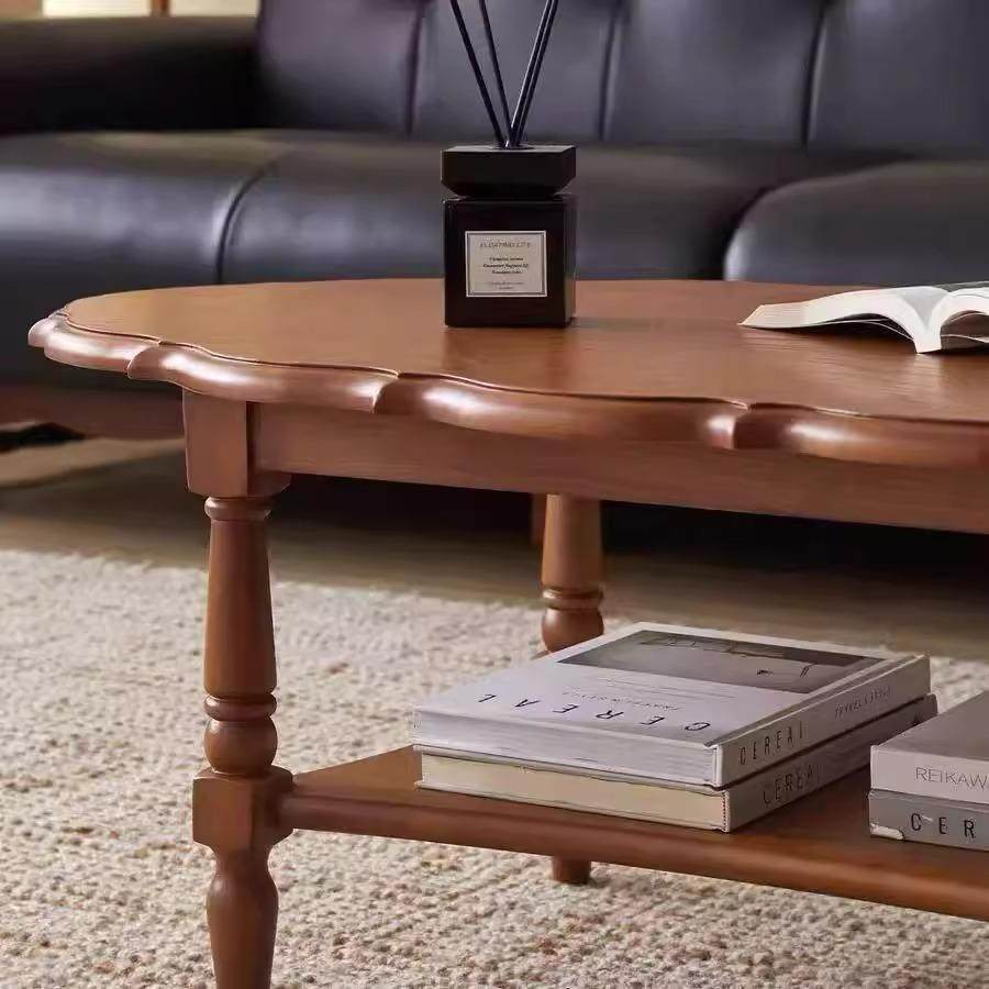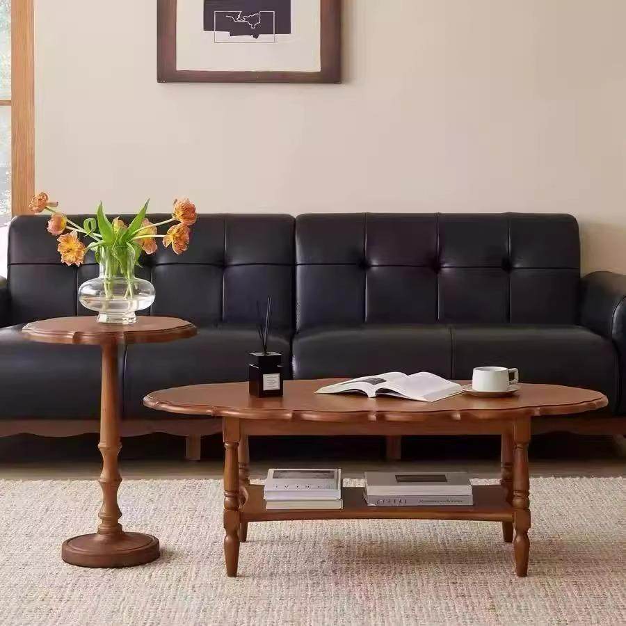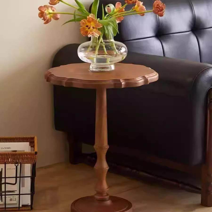 法式复古实木沙发边茶几家用客厅小户型双层置物花瓣矮桌2025新款