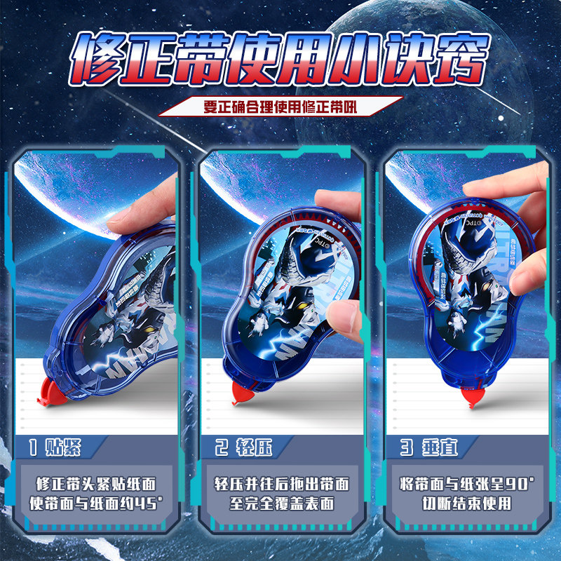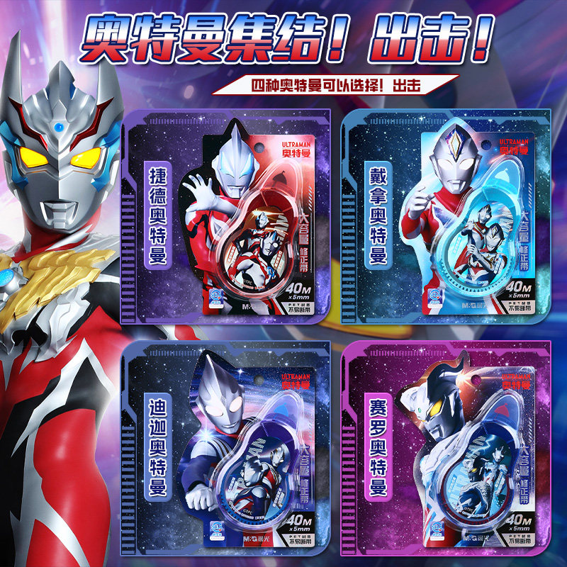 晨光修正带奥特曼修改带初中生小学生专用涂改静音耐摔40米大容量卡通可爱高颜值学生用改正带超人联名文具