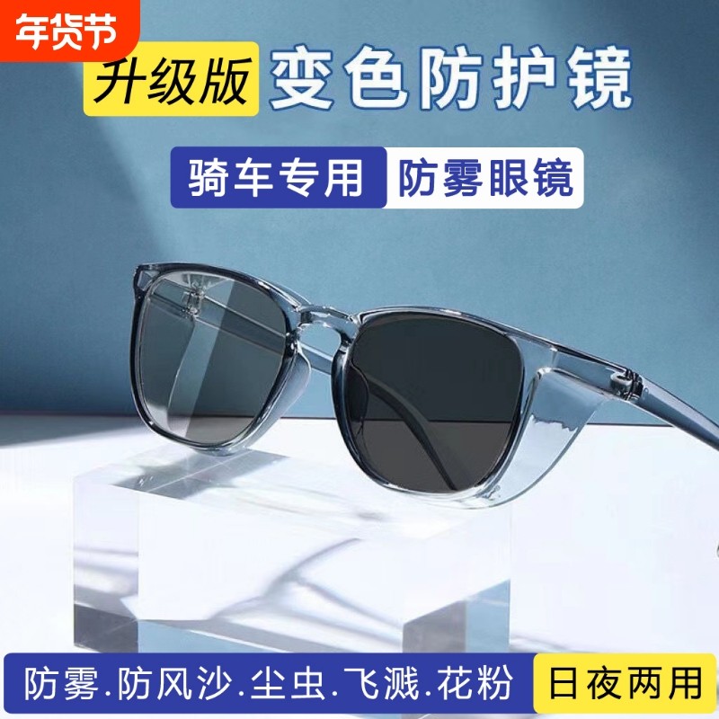 多功能防雾护目镜男女防风沙花粉防飞沫骑行黑框护目镜防蓝光眼镜