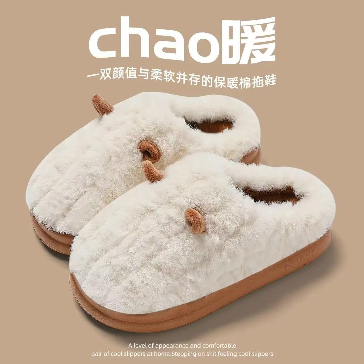 棉拖鞋女款冬季2025新款保暖防滑室内家居家用情侣可爱毛毛拖鞋男