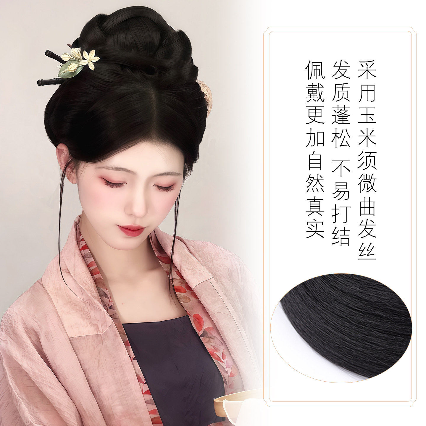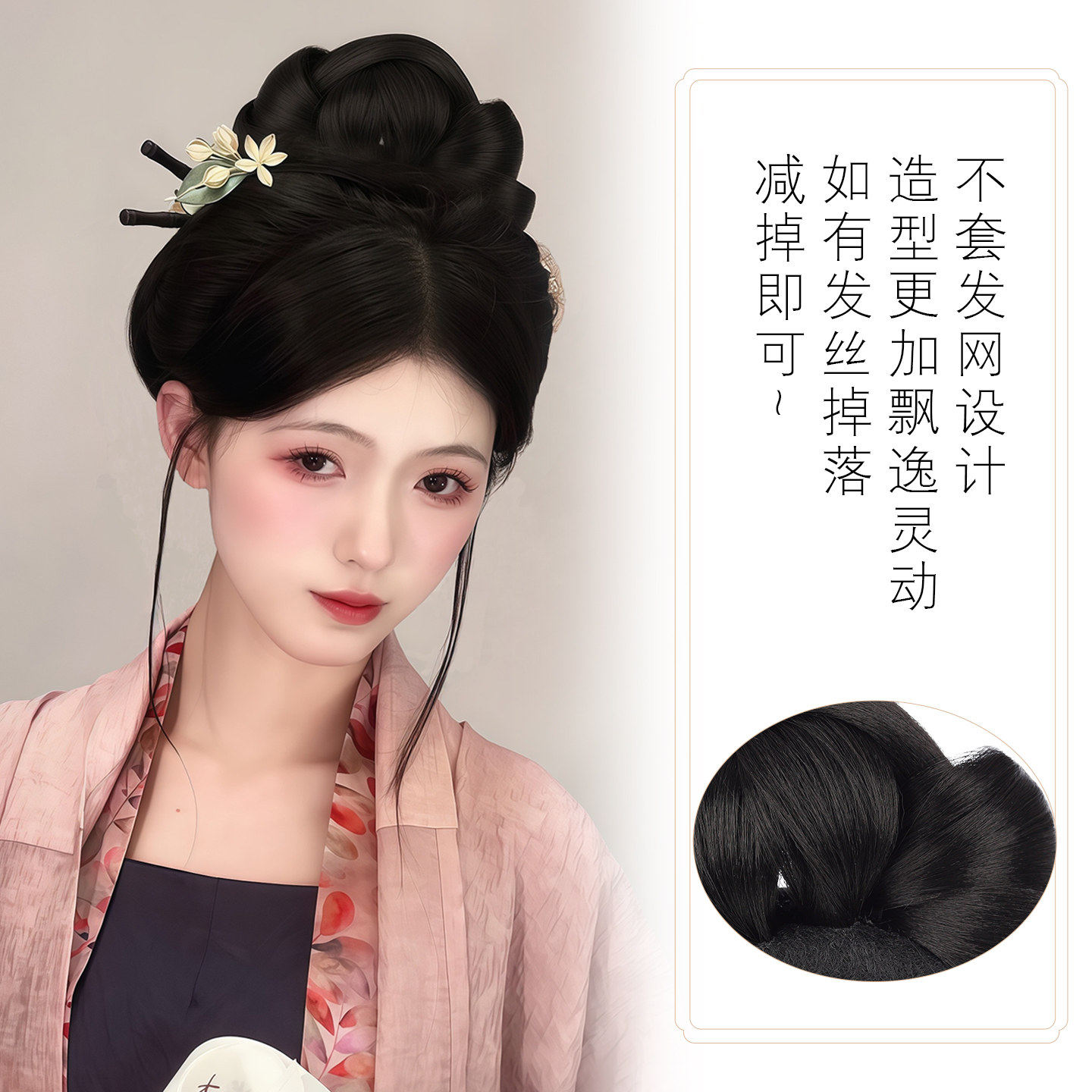 汉服假发古风发包一体式全发丝古装明制唐风盘发发髻垫发造型发饰