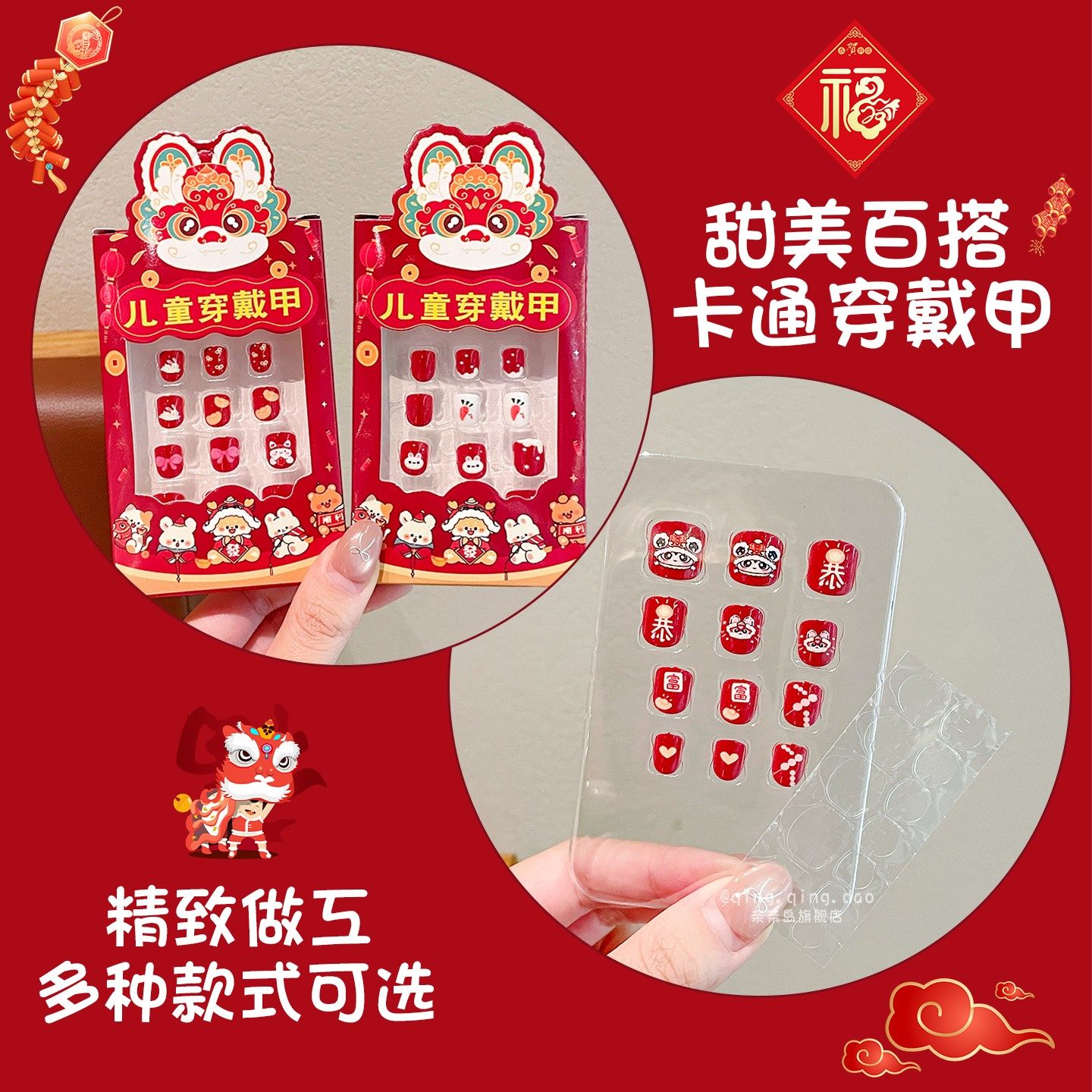 新年儿童指甲贴2026新款女孩3岁6岁穿戴甲红色喜庆防水无毒无味小学生专用果冻胶美甲贴过年手上装饰立体贴纸