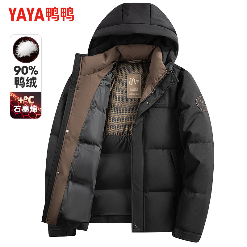 【石墨烯蓄热】鸭鸭冬季羽绒服男士短款连帽保暖时尚休闲御寒外套