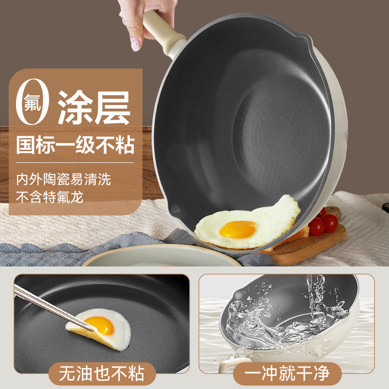 爱仕达无氟涂层不粘锅炒锅家用陶瓷不沾锅燃气电磁炉用钛锅炒菜锅
