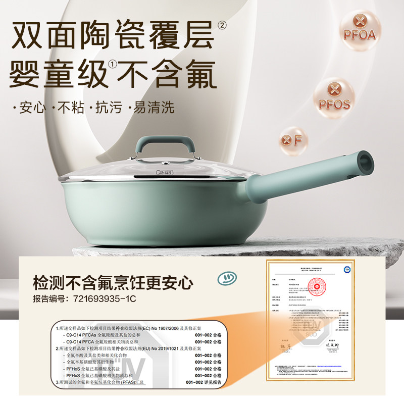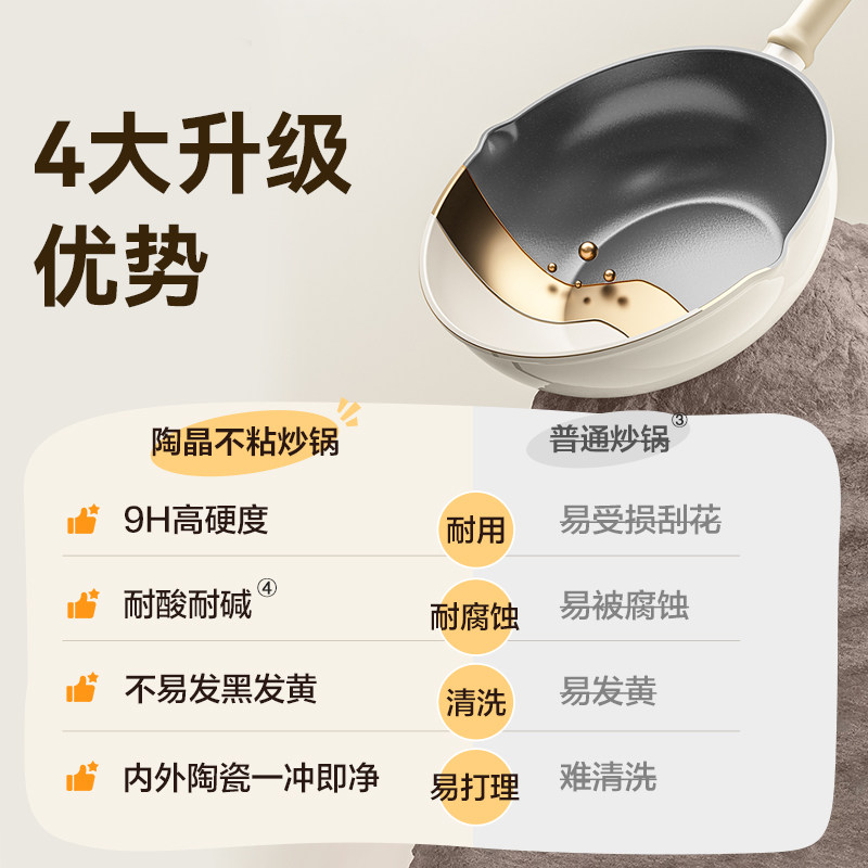 苏泊尔不粘锅炒锅家用炒菜锅不沾平底锅无氟陶瓷锅燃气灶电磁炉用