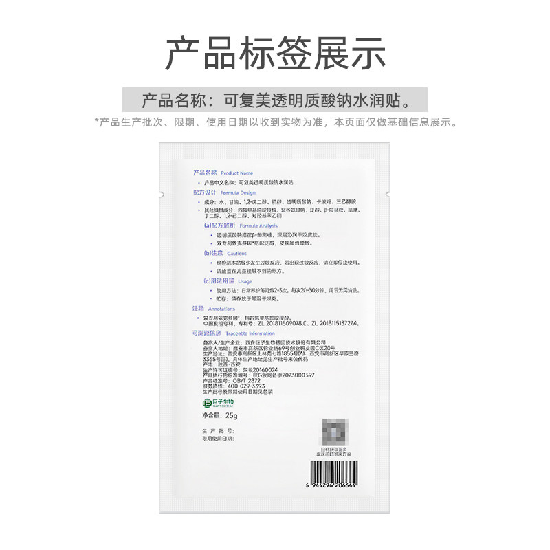 可复美透明质酸钠大水膜3片补水保湿沁润皮肤面膜舒缓敏肌面膜