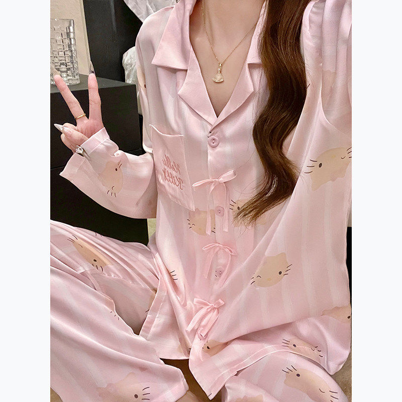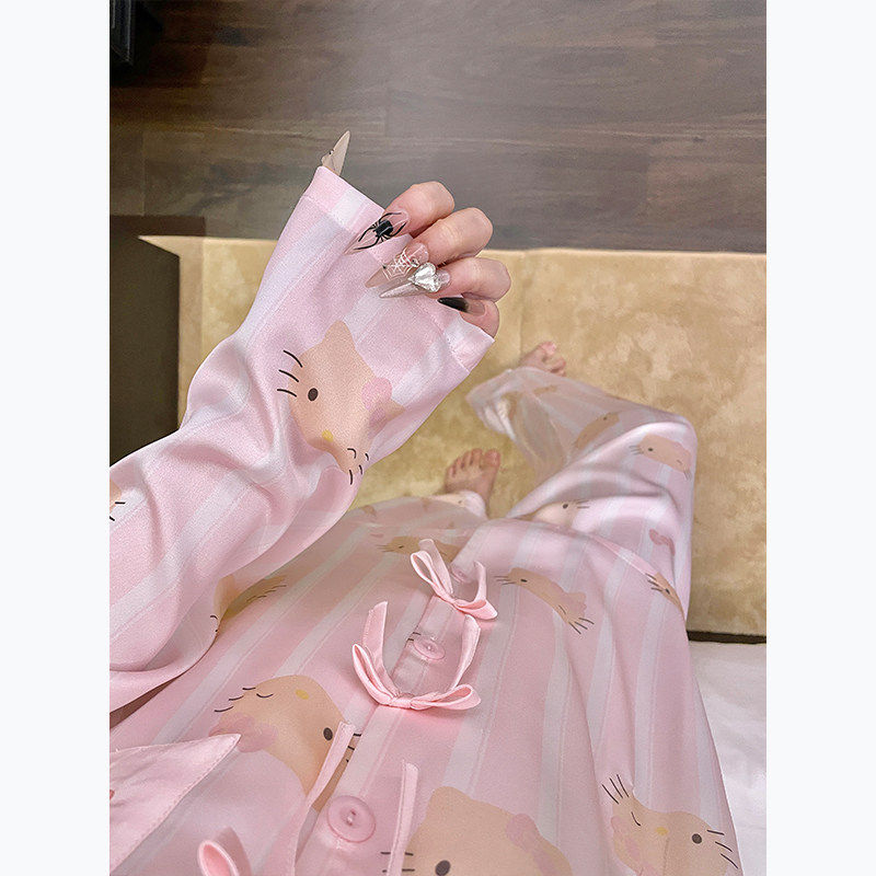 红豆可爱kitty猫睡衣女款春秋季冰丝绸2025新款高级感夏天长袖家