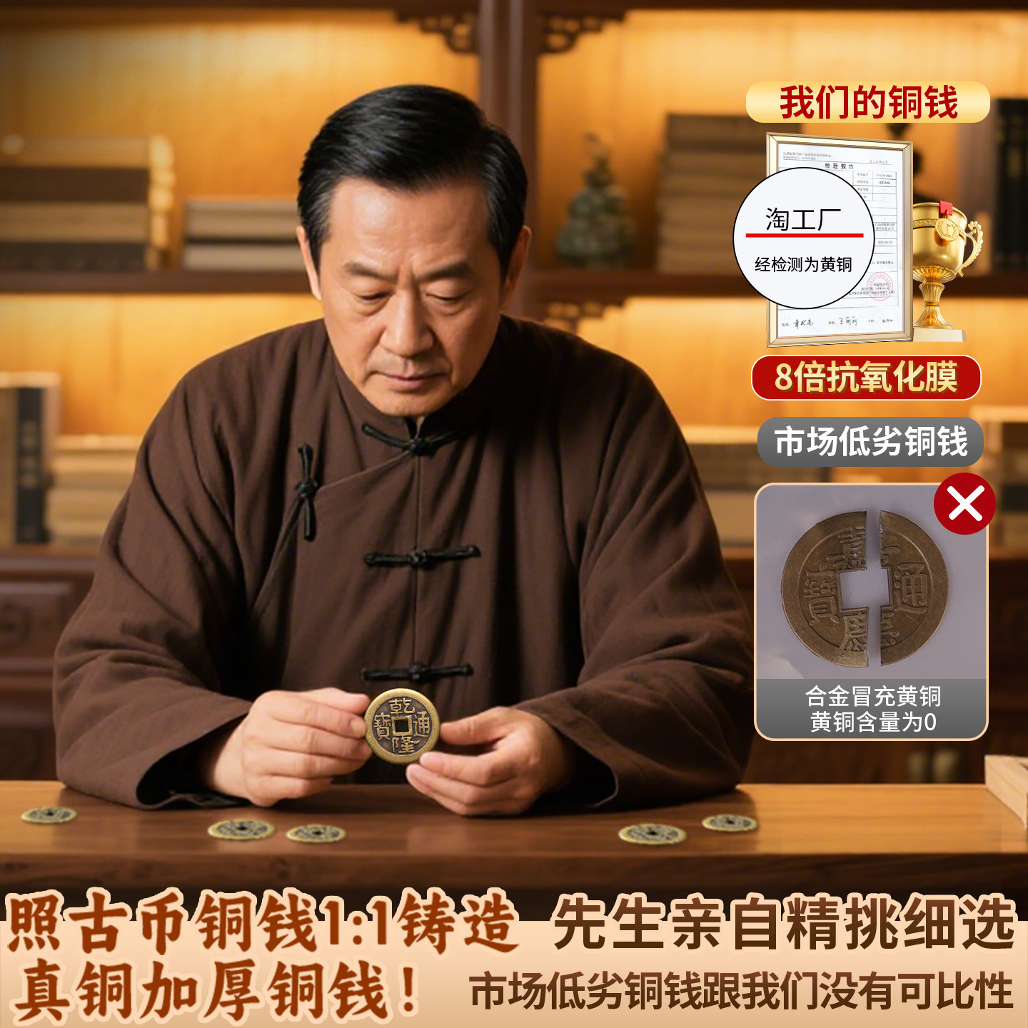加厚五帝钱散装铜板压门槛清朝摆件铜钱顺治康熙乾隆通宝装修