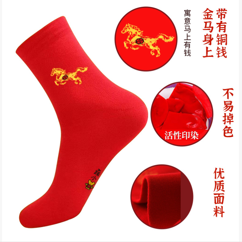 大红色袜子男女士中筒纯棉情侣生肖马本命年结婚喜庆全棉红袜子