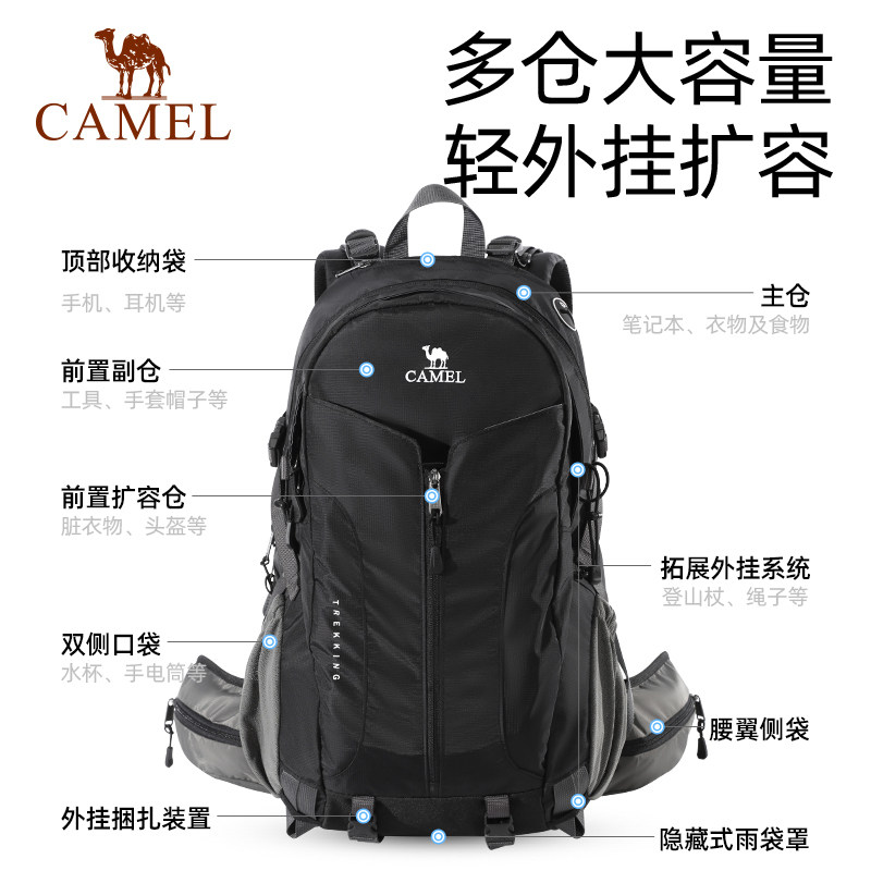 骆驼户外轻便登山包女旅行徒步爬山装备背包男大容量旅游双肩包