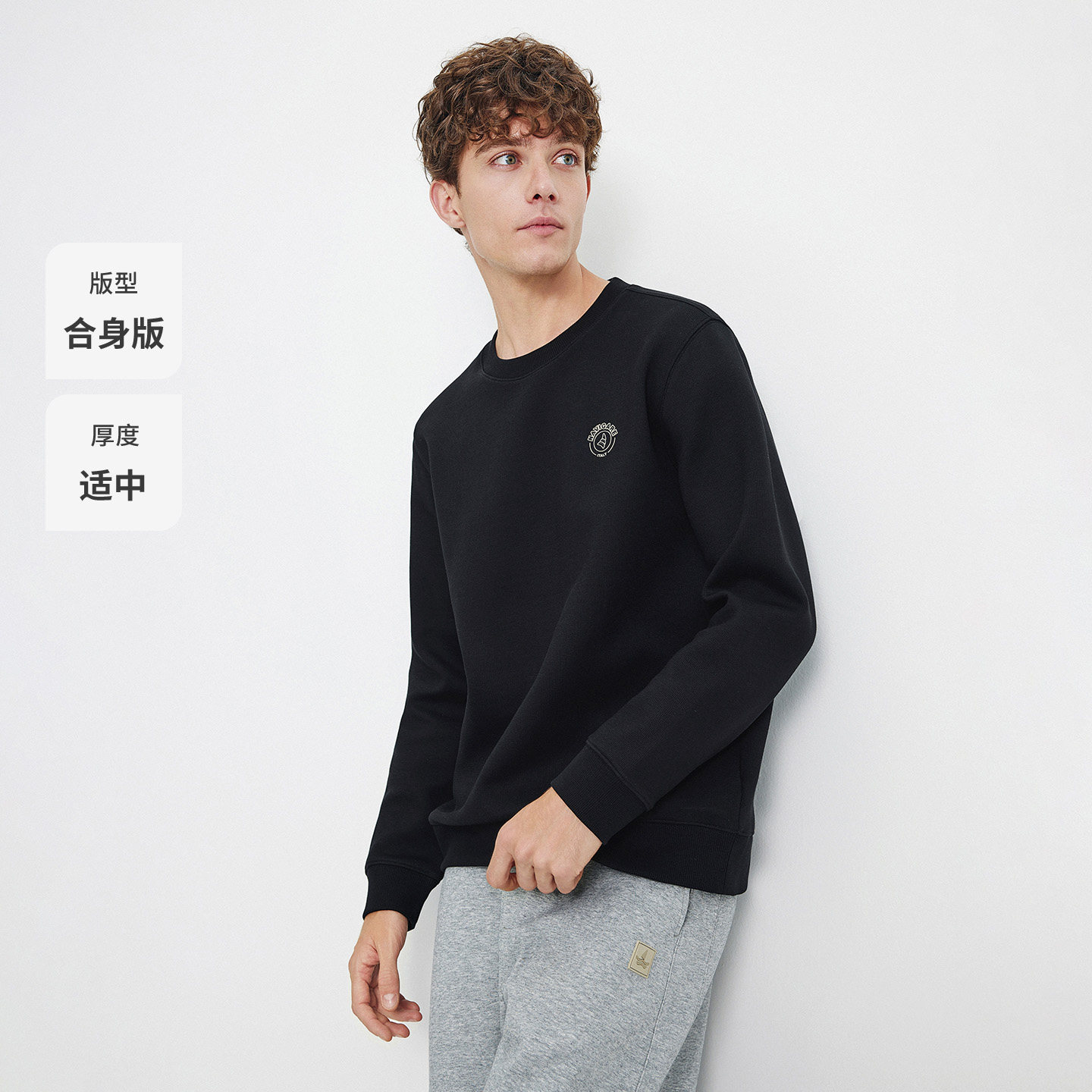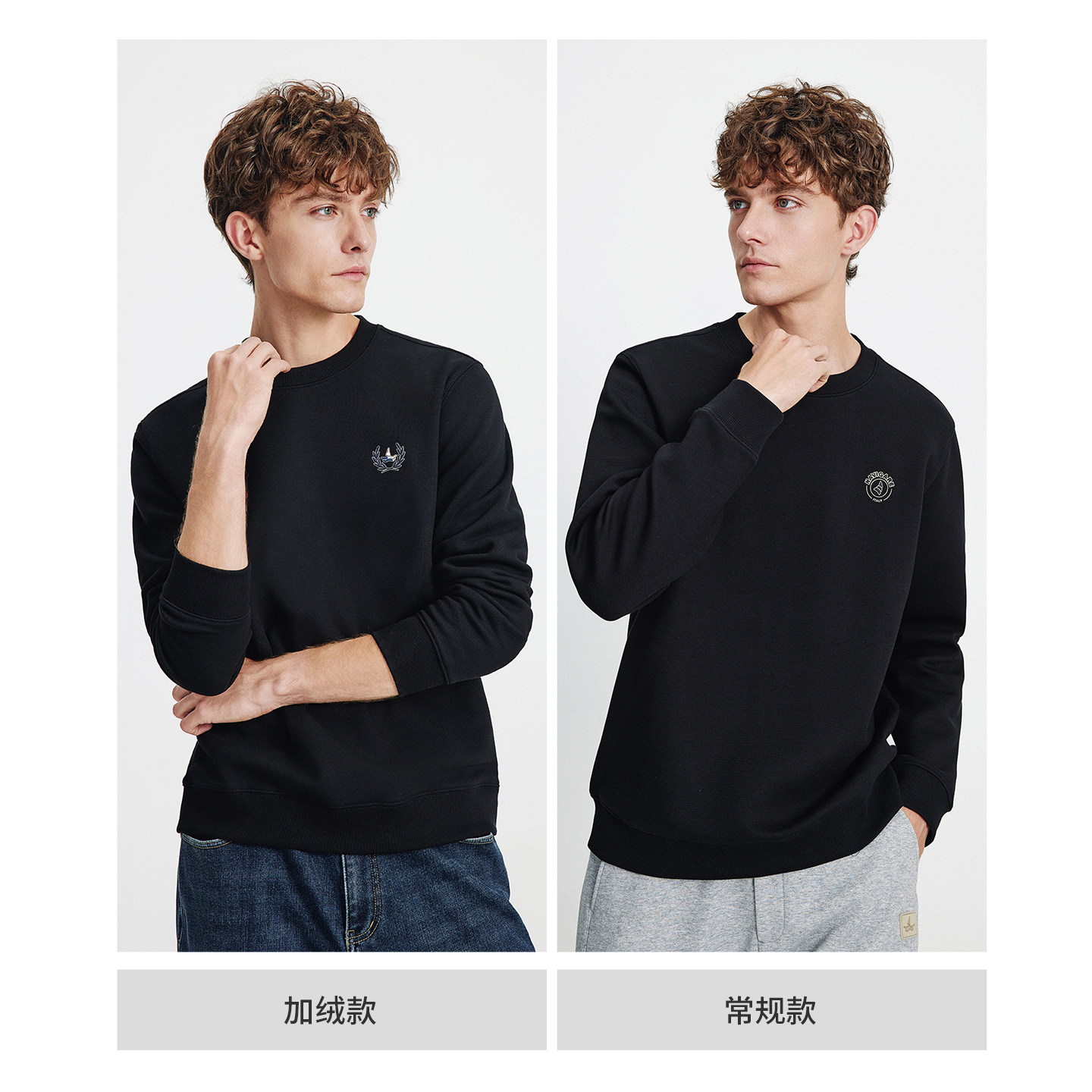 班尼路重磅卫衣男款秋季基础纯色圆领内搭男款宽松大码正肩套头衫